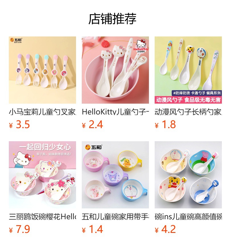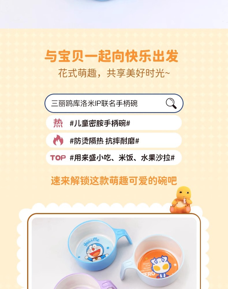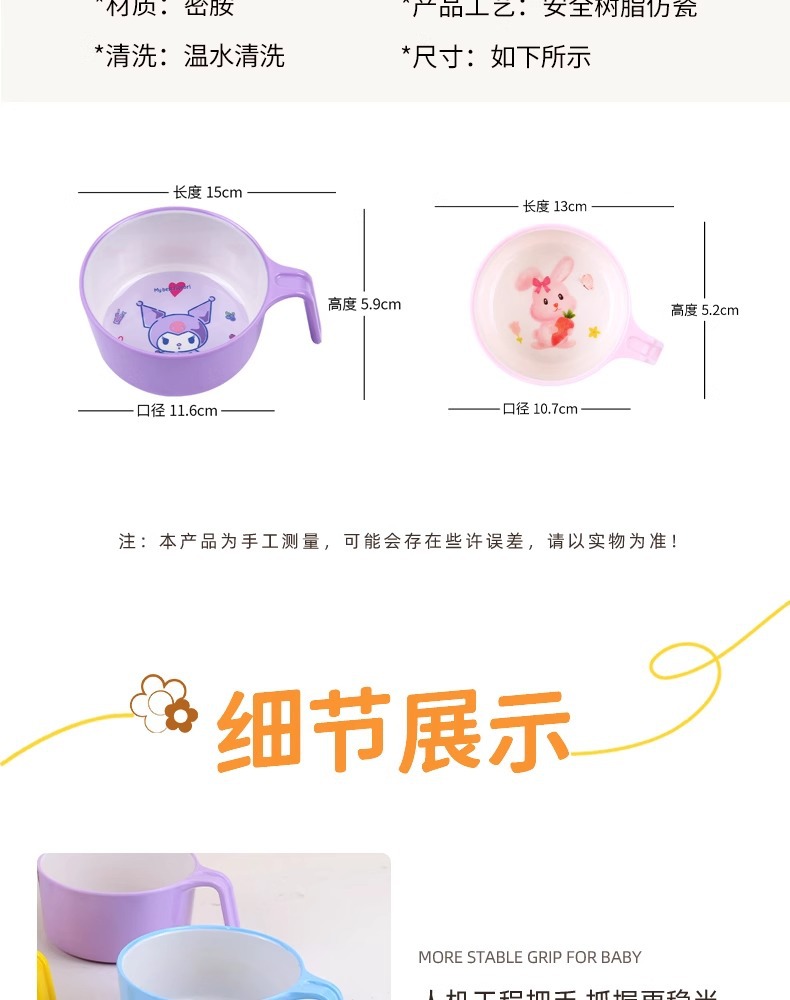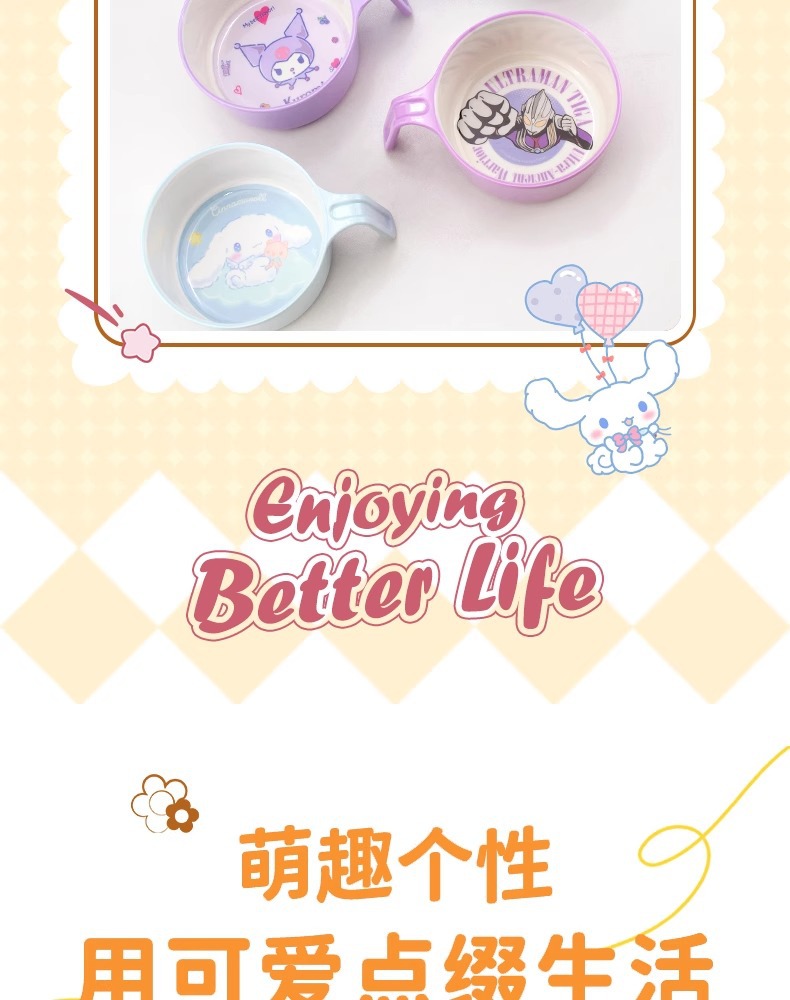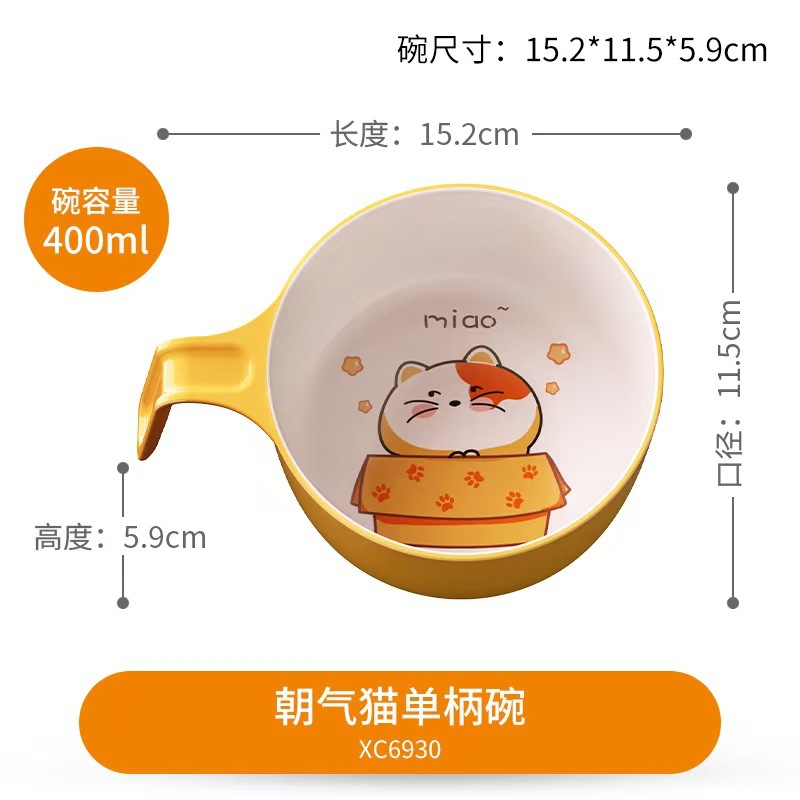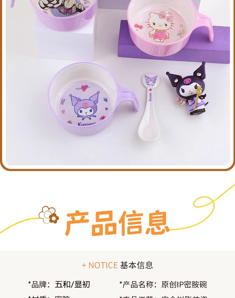 HelloKitty 어린이 음식 그릇 손잡이 귀여운 밥 그릇 가정용 높은 가치의 단일 손잡이 그릇 만화 아기 그릇스토어 가기