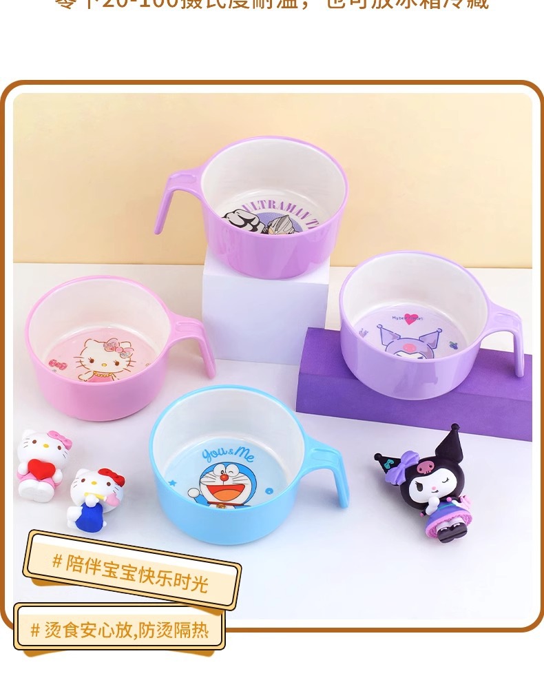 HelloKitty 어린이 음식 그릇 손잡이 귀여운 밥 그릇 가정용 높은 가치의 단일 손잡이 그릇 만화 아기 그릇