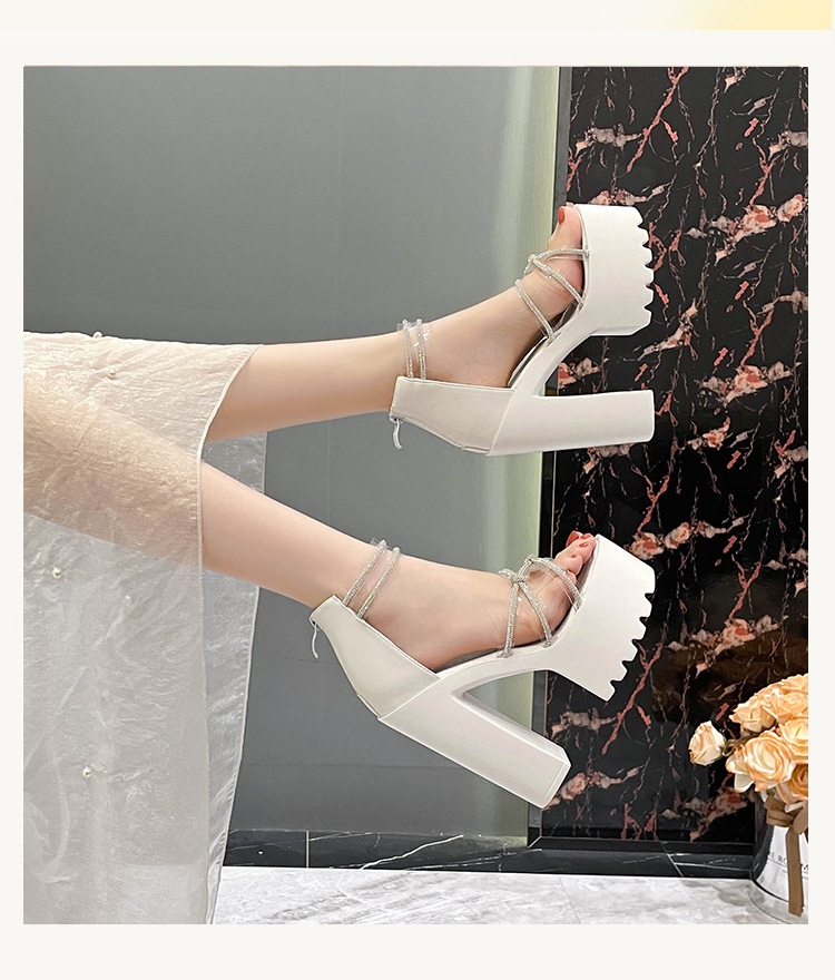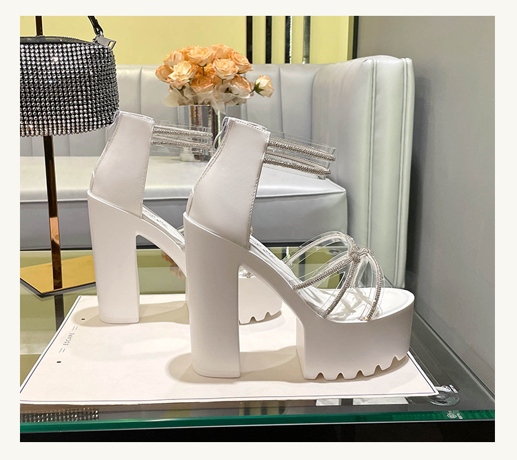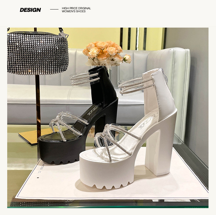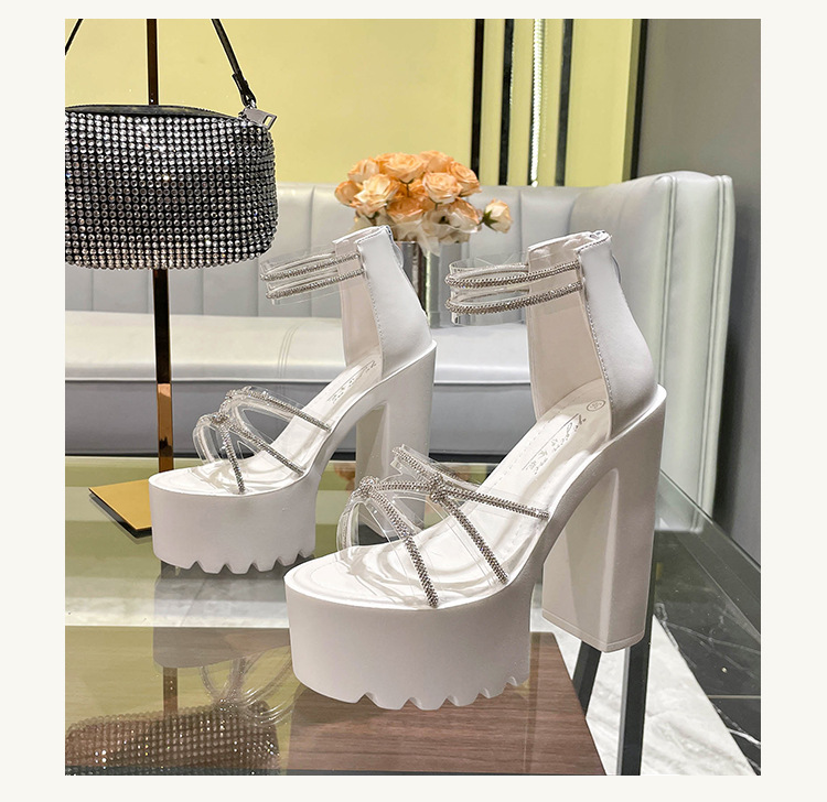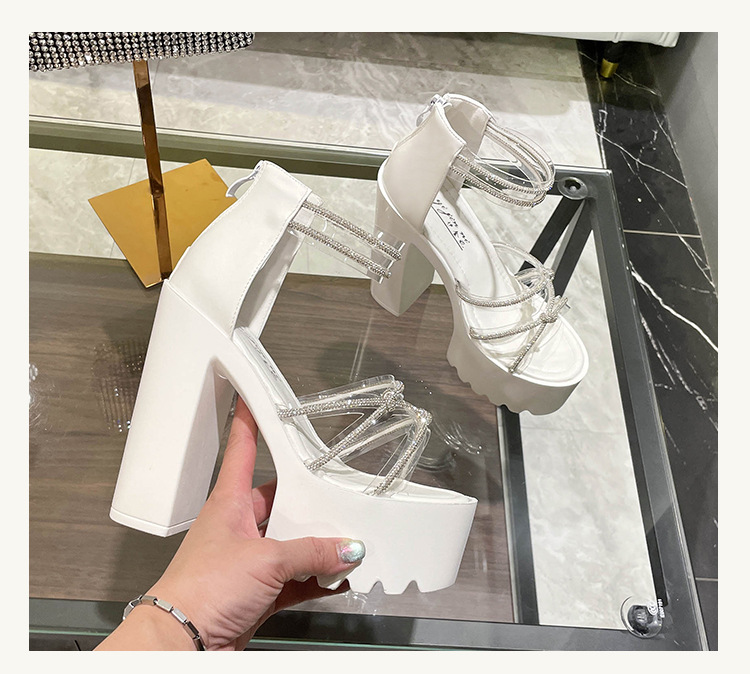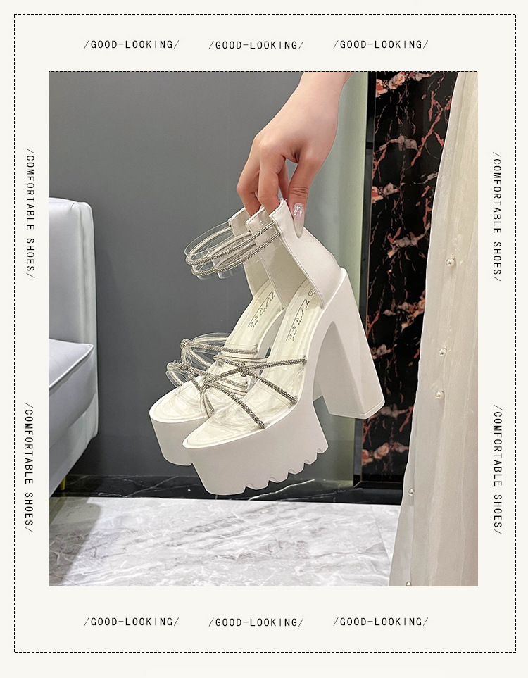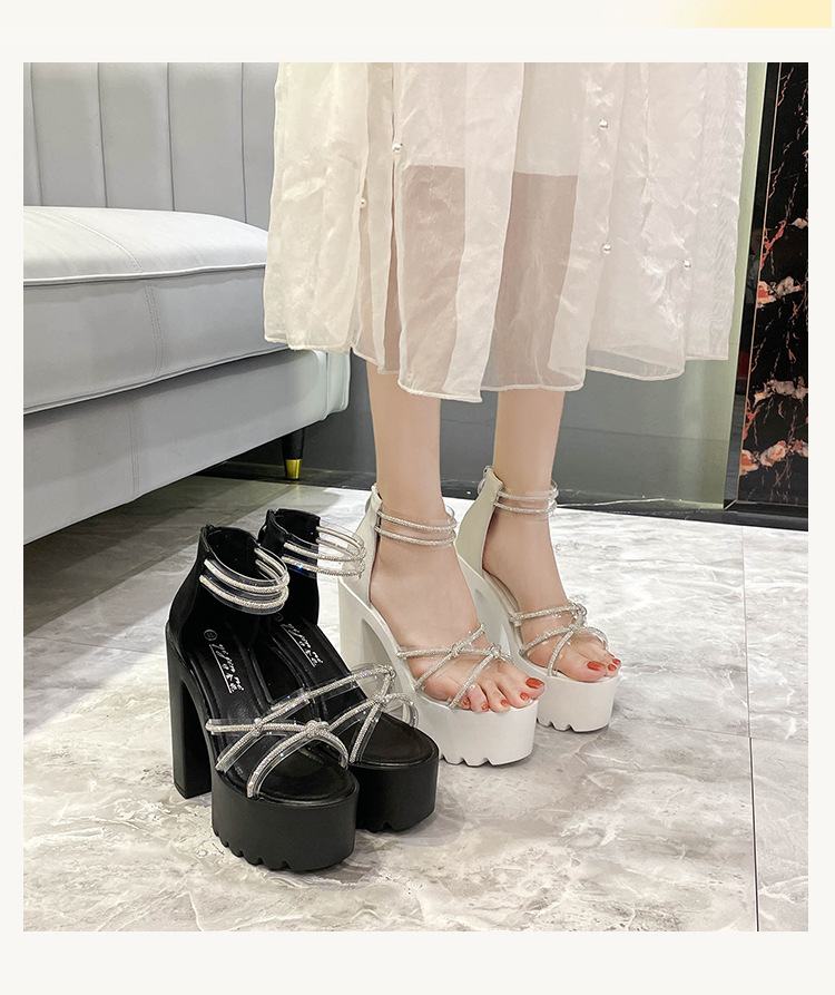 요정 스타일 해변 해변 로마 샌들 여성 새로운 여름 의상 14cm 두꺼운 밑바닥 우아한 라인스톤 샌들스토어 가기