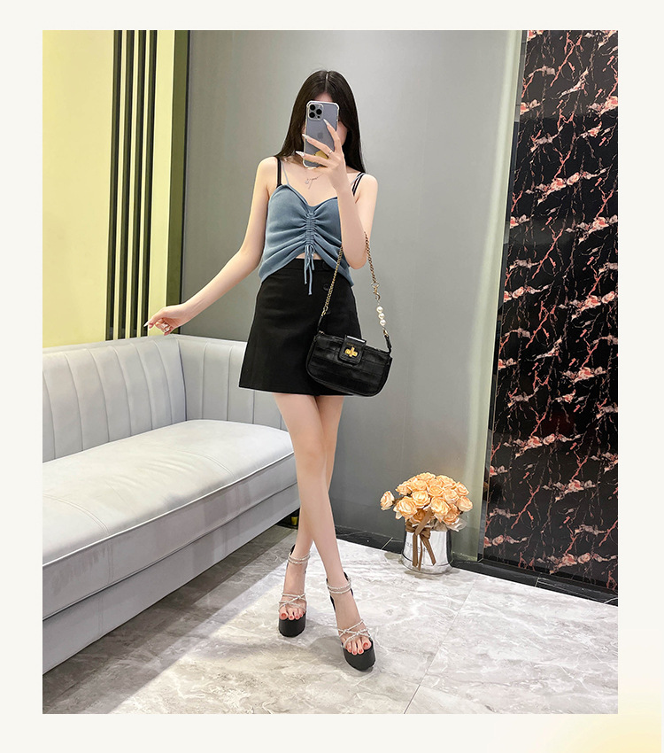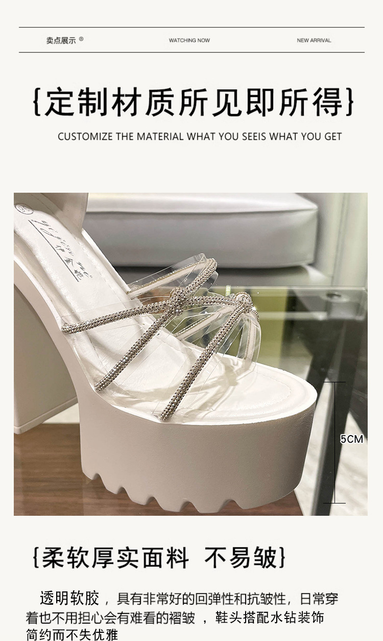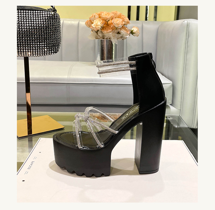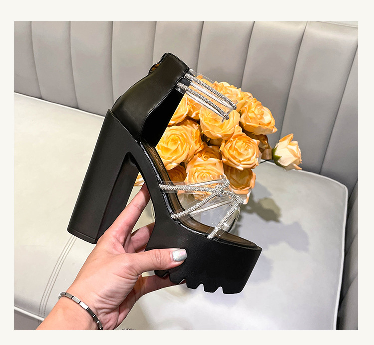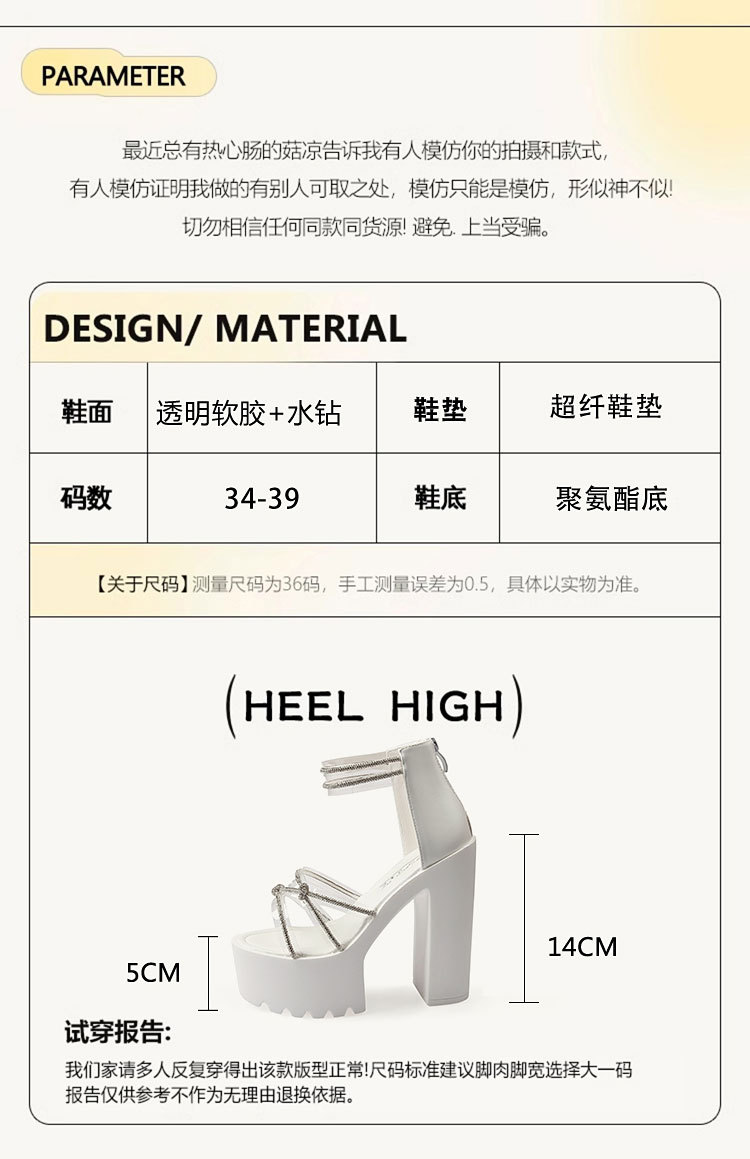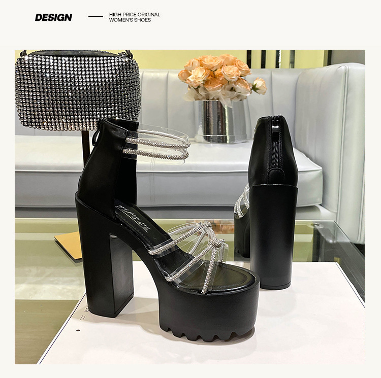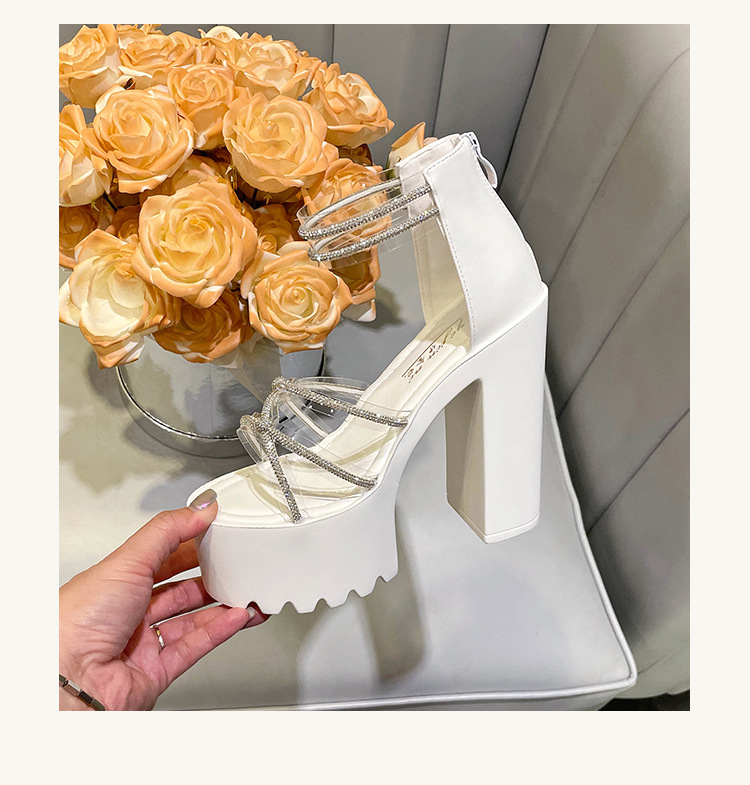 요정 스타일 해변 해변 로마 샌들 여성 새로운 여름 의상 14cm 두꺼운 밑바닥 우아한 라인스톤 샌들스토어 가기
