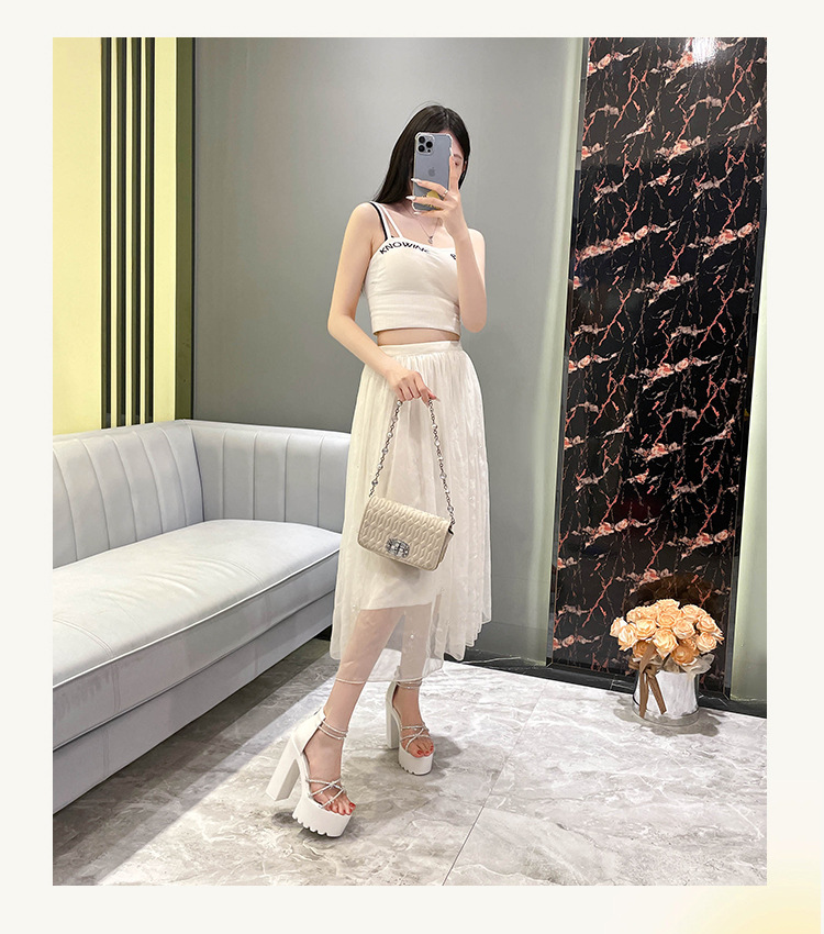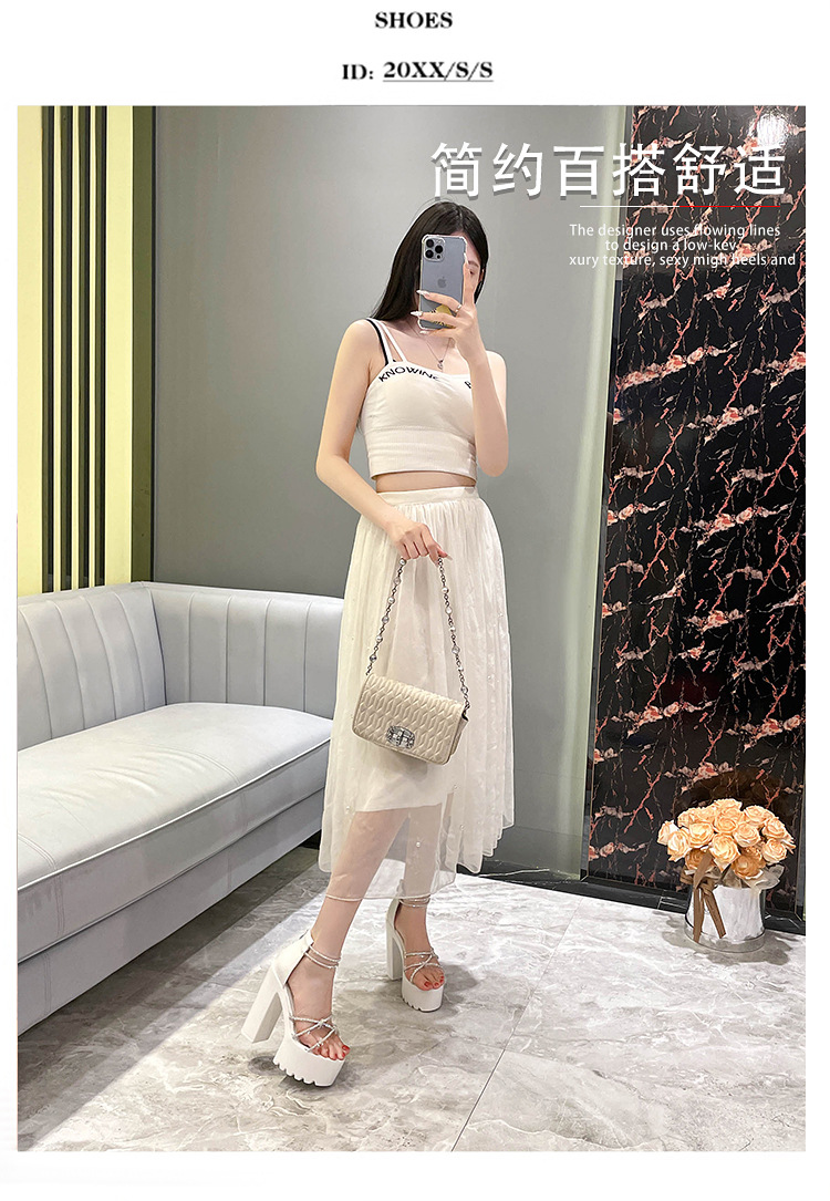 요정 스타일 해변 해변 로마 샌들 여성 새로운 여름 의상 14cm 두꺼운 밑바닥 우아한 라인스톤 샌들