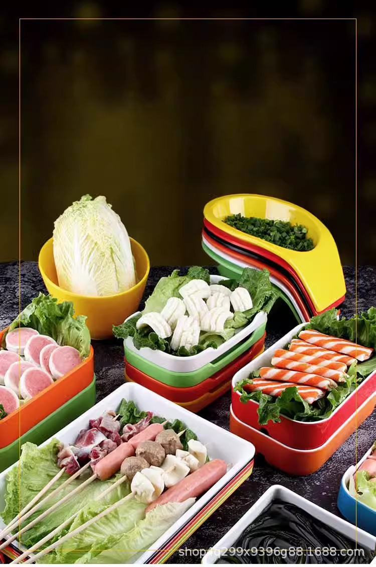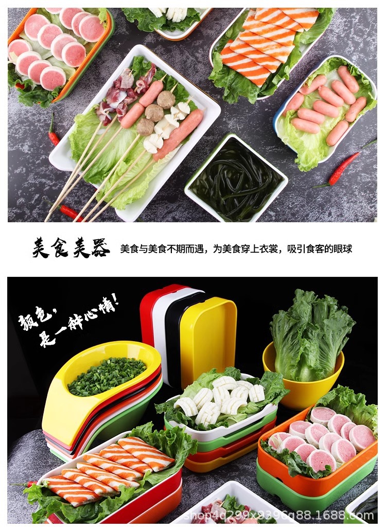 멜라민 핫팟 레스토랑 접시 디스플레이 플레이트 플라스틱 끈 플레이트 바베큐 고기 플레이트 셀프 서비스 육즙 작은 해산물 플레이트스토어 가기