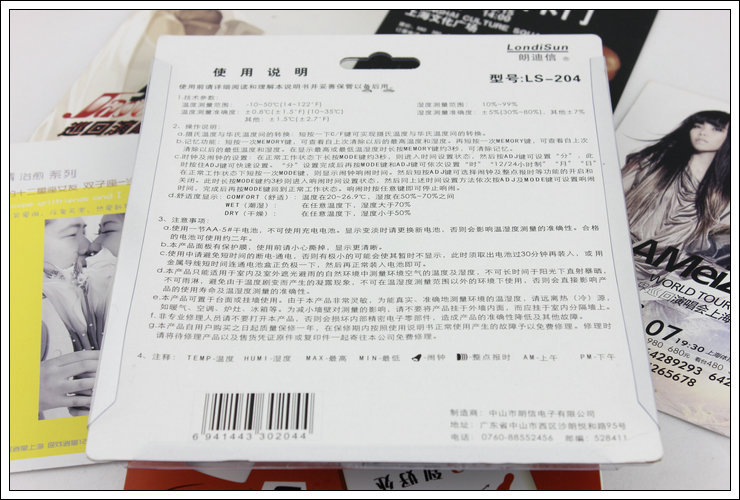 温度测试范围:-10---50℃(14---122℉) 温度测试精度:±1℃(±1.8℉)