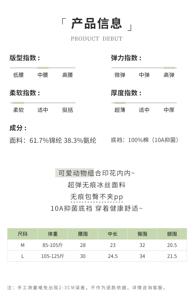 말차 소녀 원피스 무봉제 귀여운 동물 프린트 소녀 팬티 중간 허리 누드감 10A 항균 삼각팬티스토어 가기