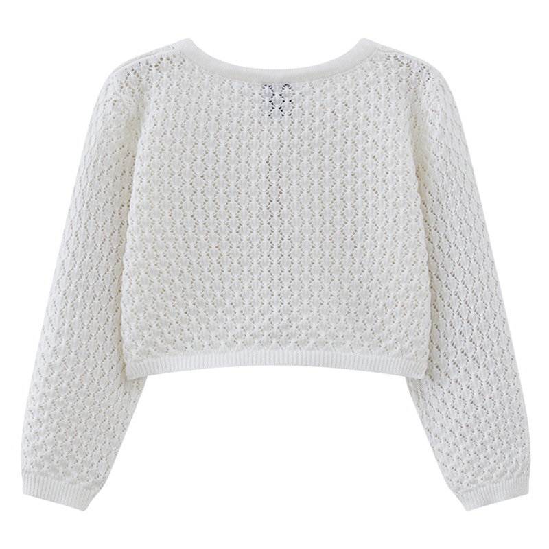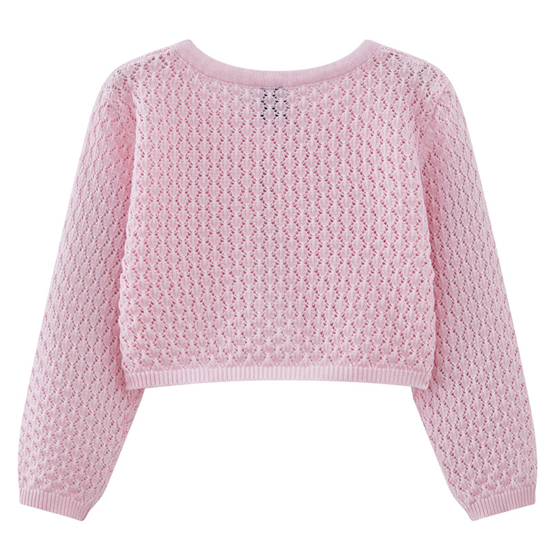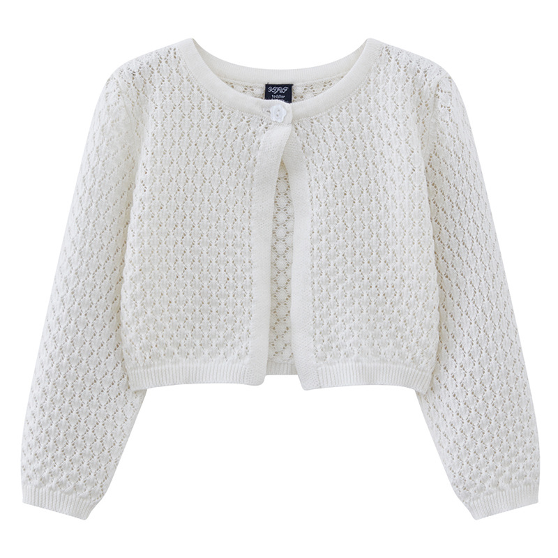 라운드 넥 중공 유아 및 유아 원 버튼 숄 재킷 에어컨 셔츠 여름 얇은 니트 가디건 중소형 소녀용