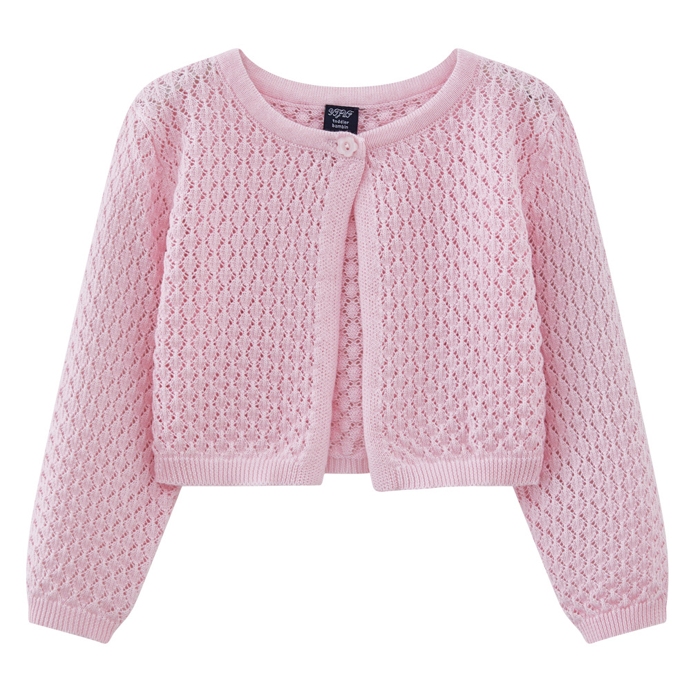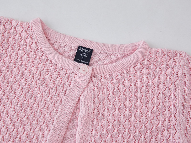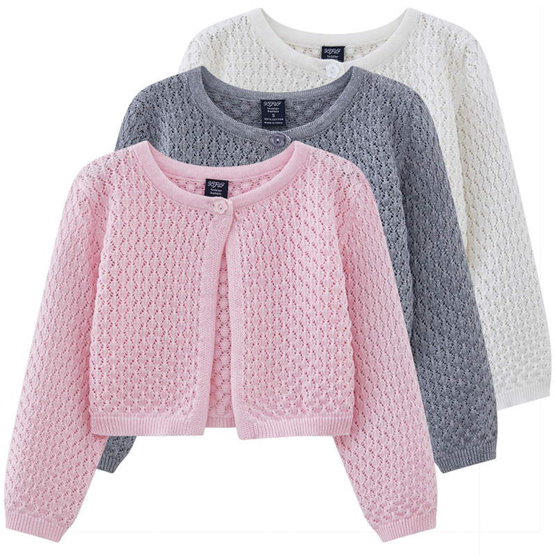 라운드 넥 중공 유아 및 유아 원 버튼 숄 재킷 에어컨 셔츠 여름 얇은 니트 가디건 중소형 소녀용스토어 가기