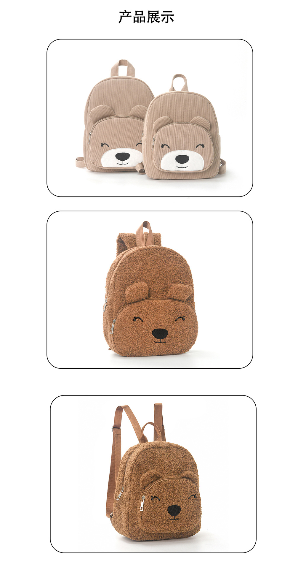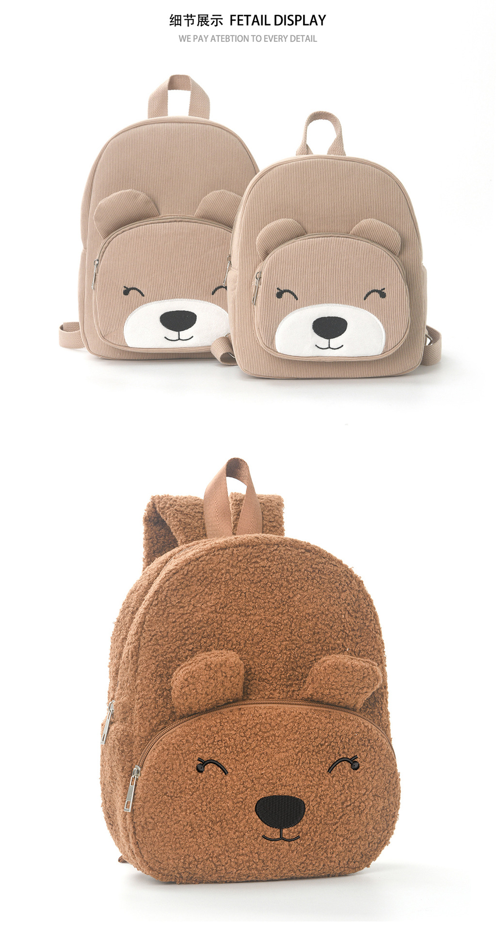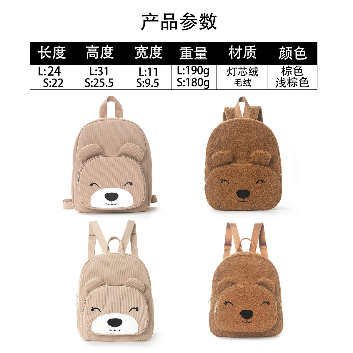 국경 간 인기 판매 곰 배낭 귀여운 만화 학교 가방 패션 캐주얼 배낭 초등학생 코듀로이 플러시 가방