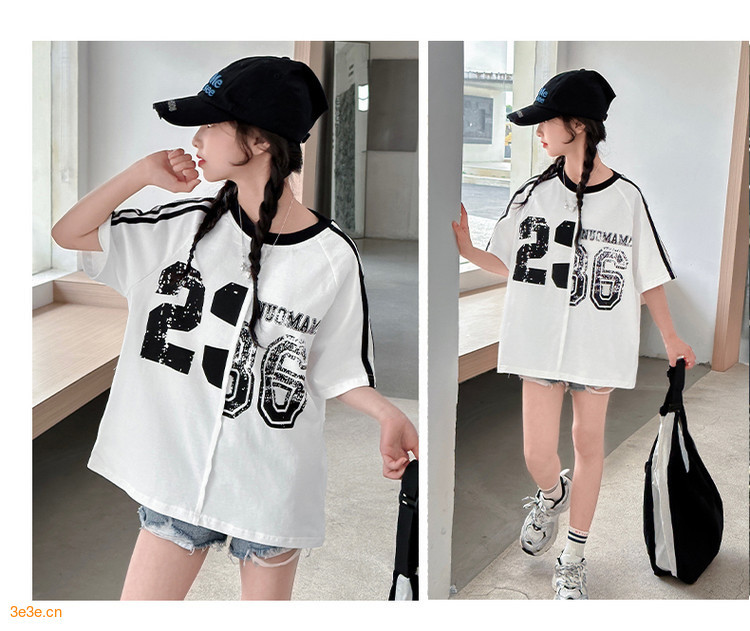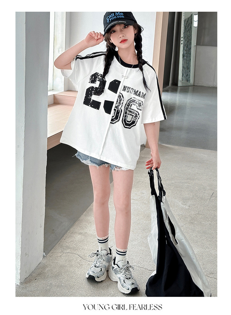 국경 간 소녀 여름 반팔 티셔츠 2025 새로운 스타일 중대형 어린이 여름 트렌디 반팔 올 매치 루즈 탑 트렌디스토어 가기