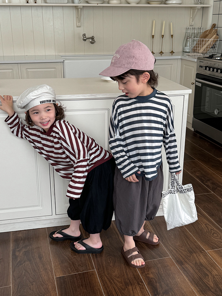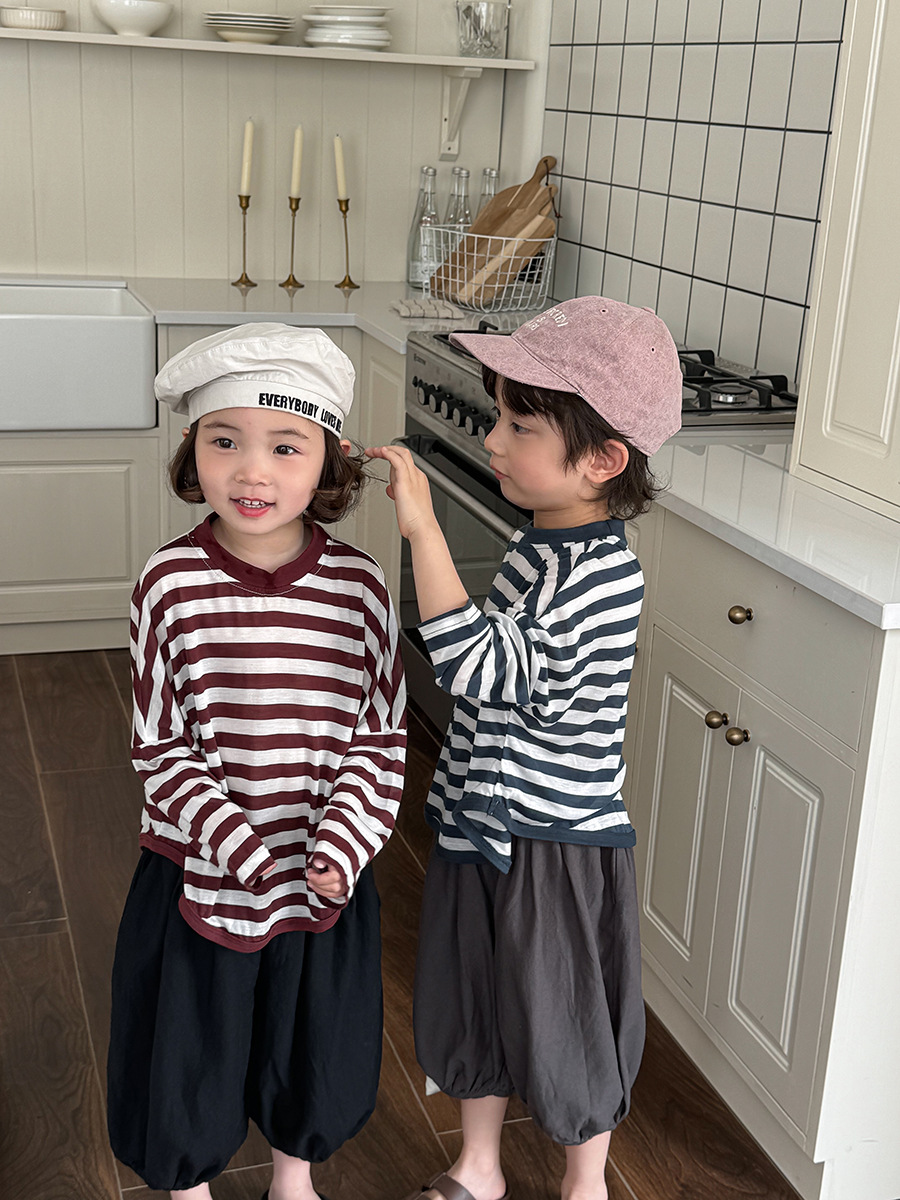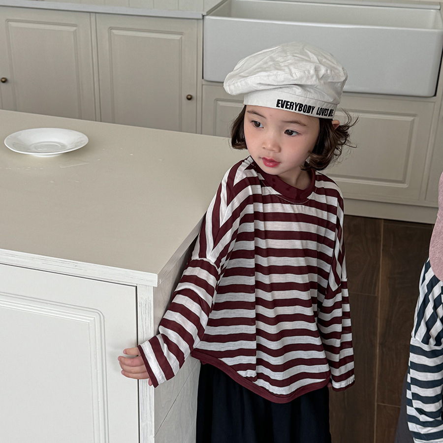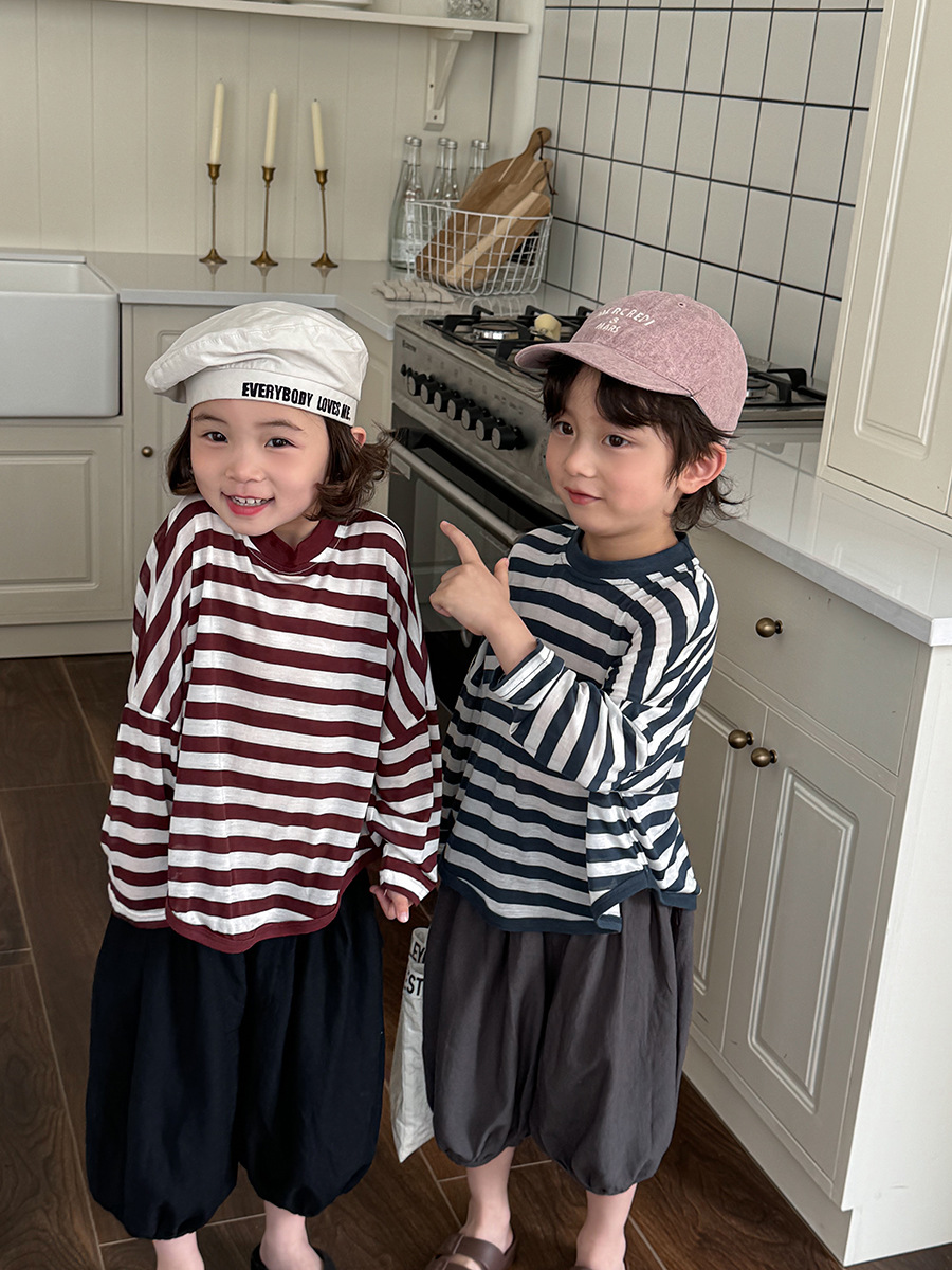 Jiaye 어린이 제품 2025 어린이 여름 새로운 줄무늬 텐셀 티셔츠 소년과 소녀를위한 느슨하고 시원한 태양 보호 의류스토어 가기