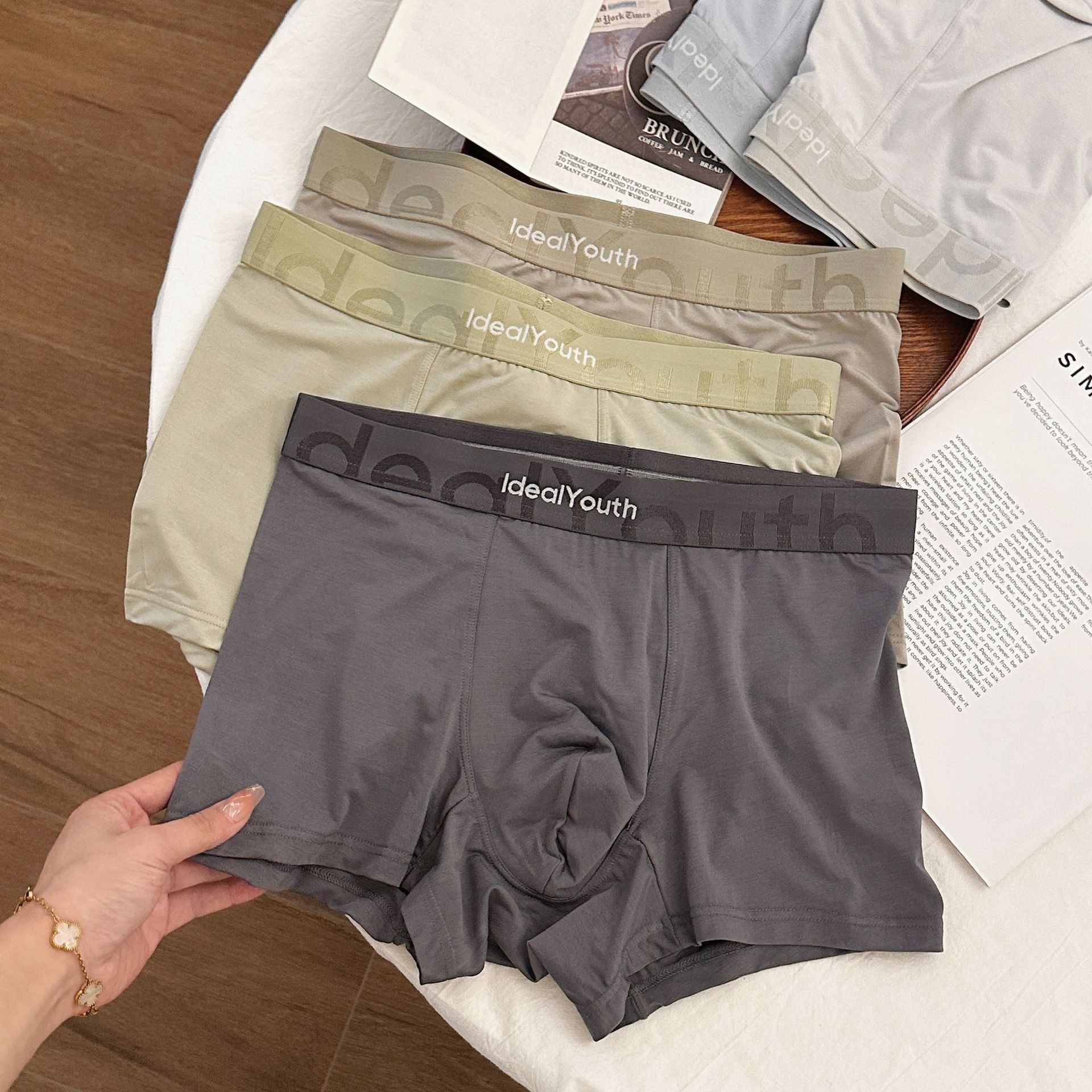 남자 속옷 모달 남자 반바지 Tracless Sense Boxers Ice Silk 2025 새로운 남자 통기성 복서스토어 가기