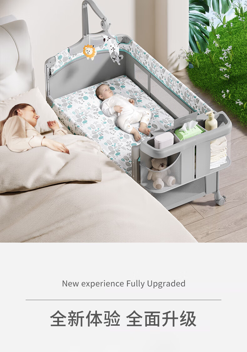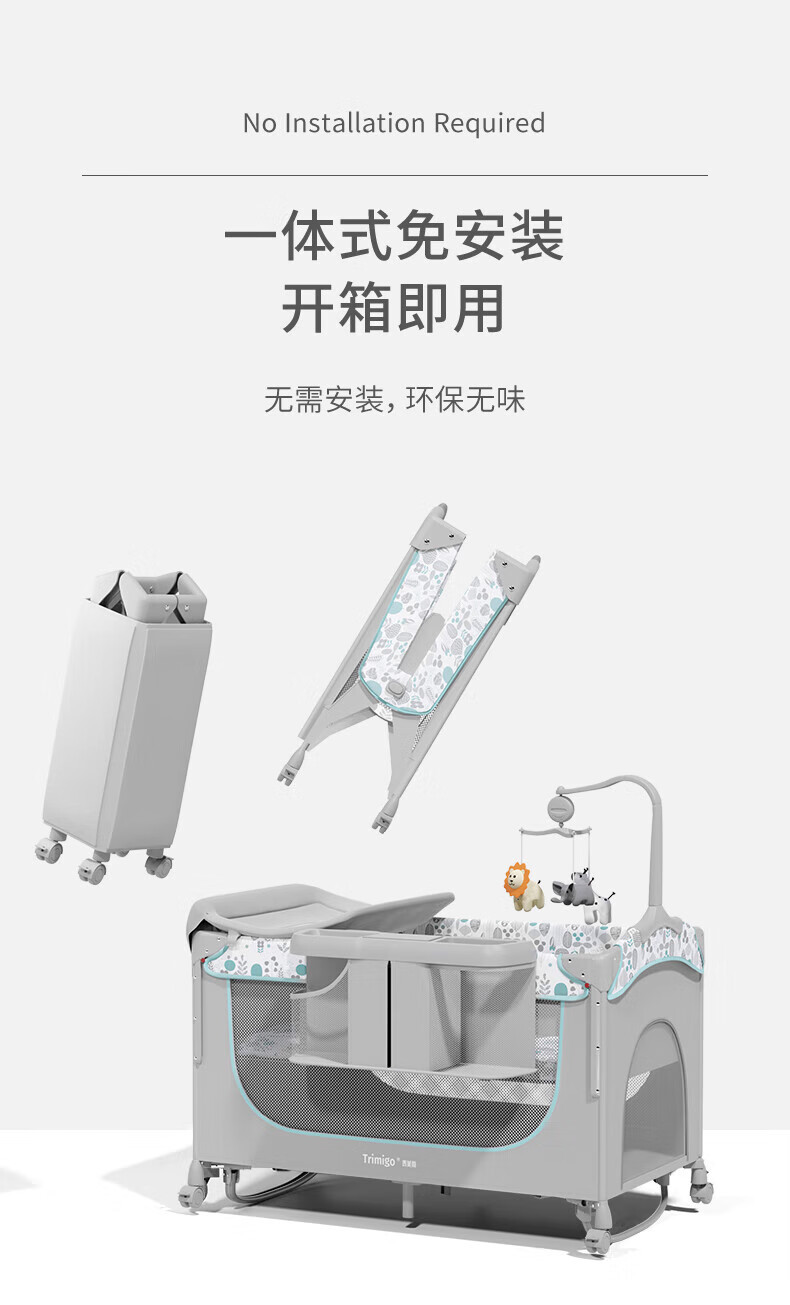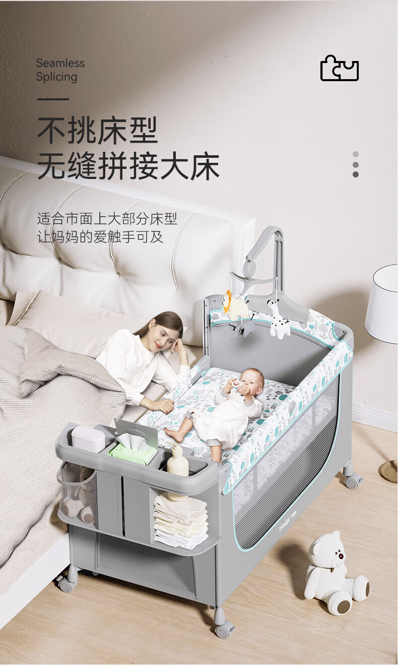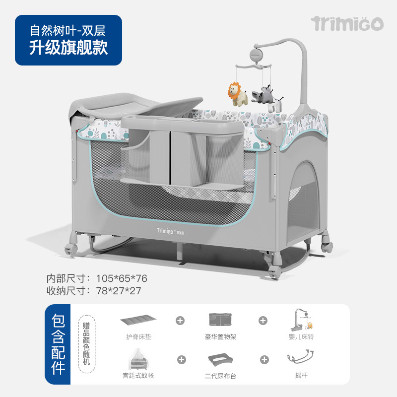 기저귀 테이블이있는 Taimei 높은 아기 침대 접합 침대 접이식 신생아 침대 아기 제품 셰이커스토어 가기