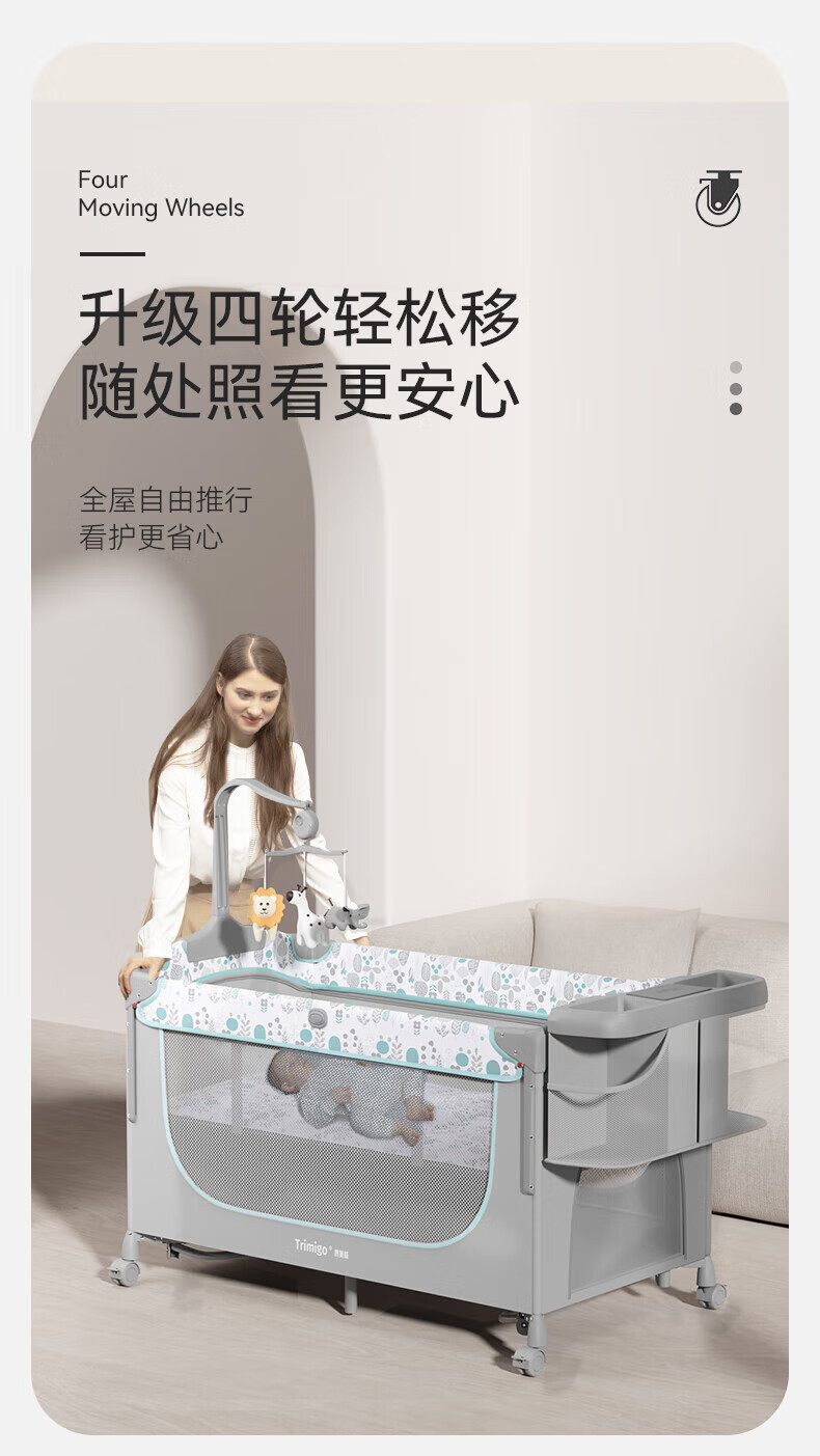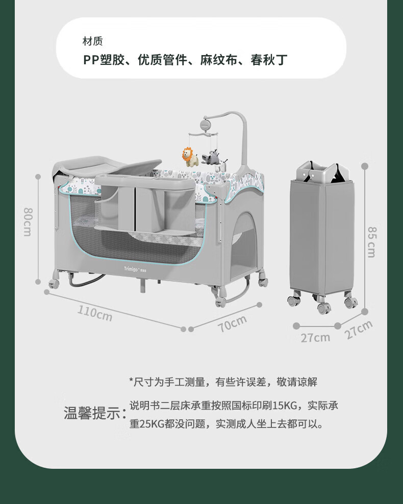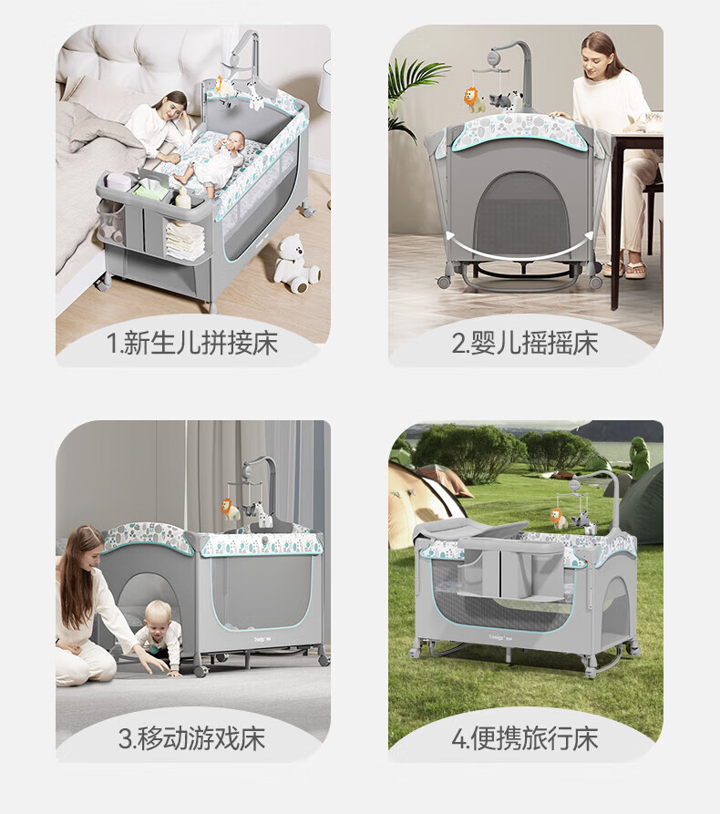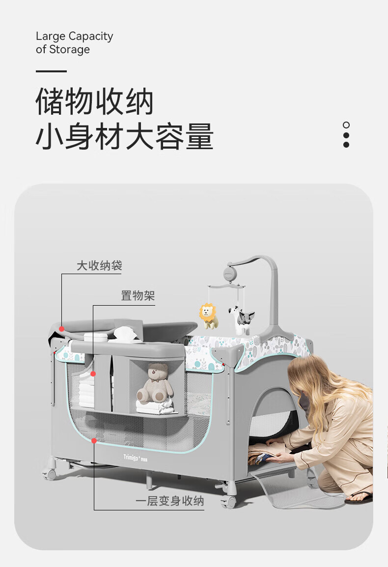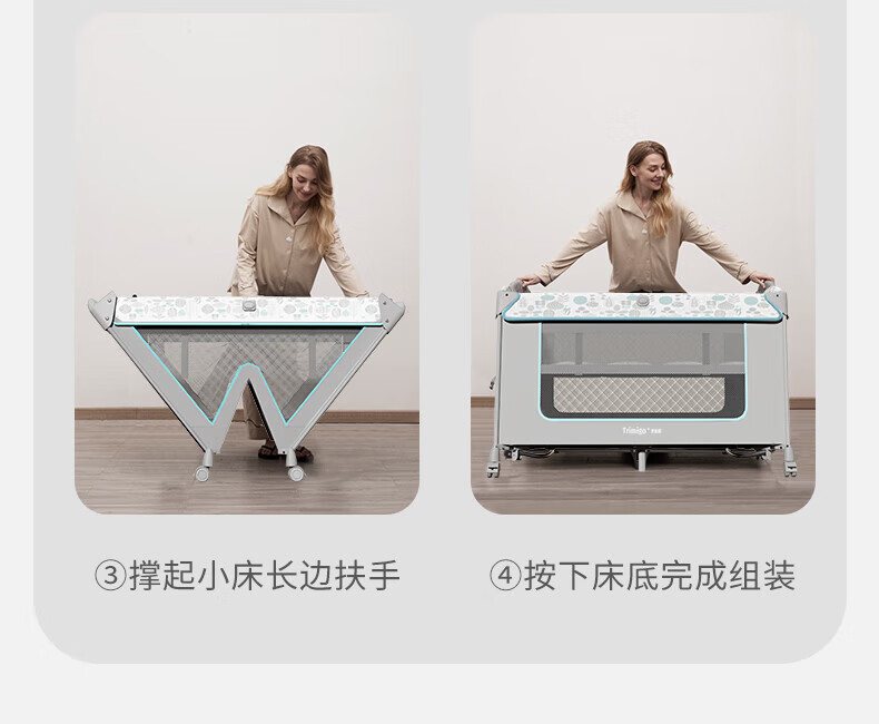 기저귀 테이블이있는 Taimei 높은 아기 침대 접합 침대 접이식 신생아 침대 아기 제품 셰이커스토어 가기