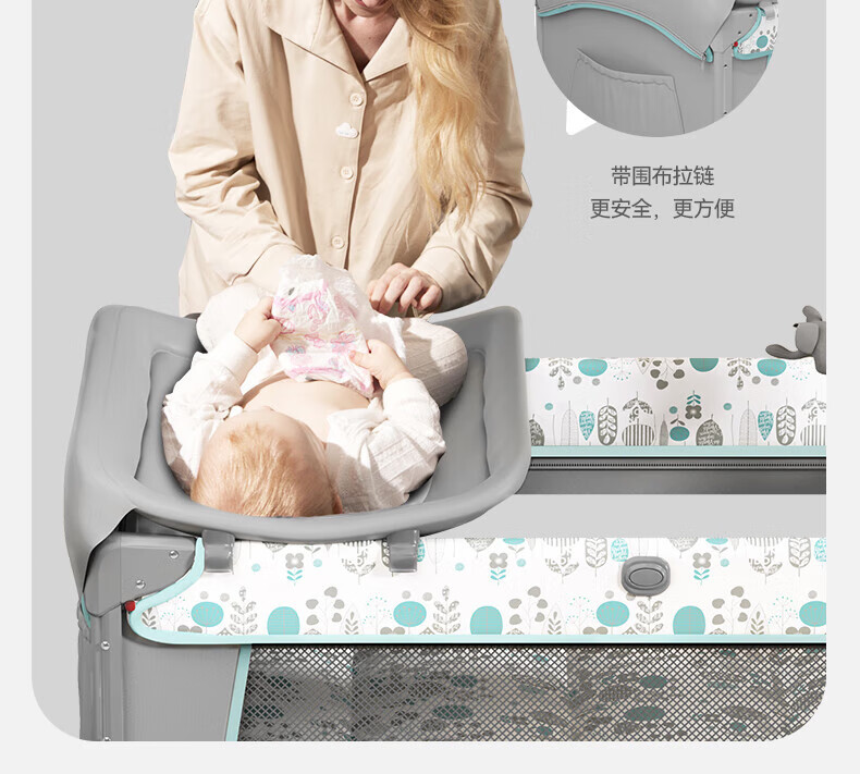 기저귀 테이블이있는 Taimei 높은 아기 침대 접합 침대 접이식 신생아 침대 아기 제품 셰이커