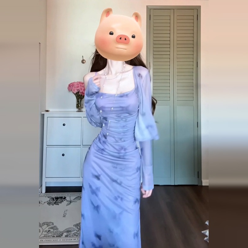 보라색 스트랩 꽃 원피스 여성 여름 2025 새로운 프랑스 스타일 우아한 해변 휴가 원피스 세트
