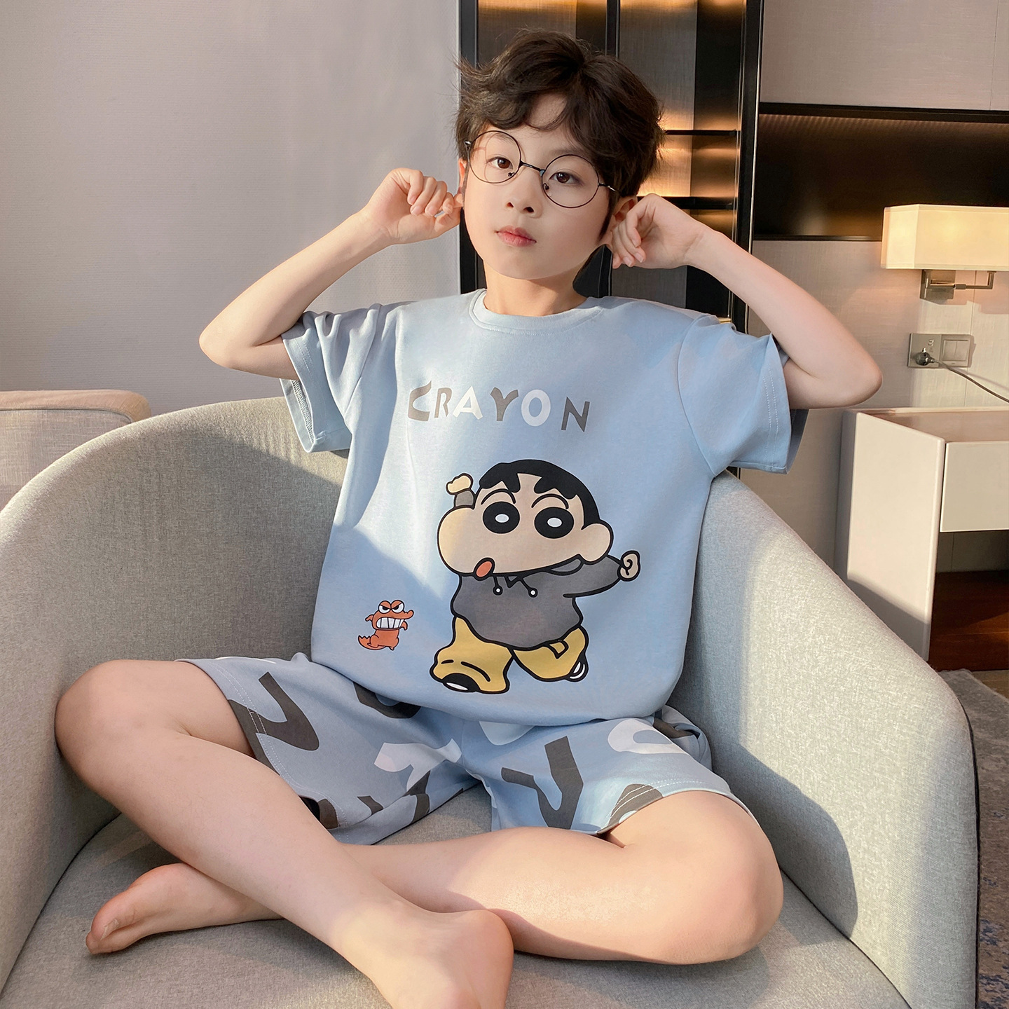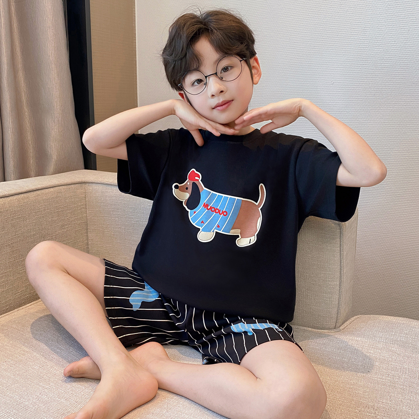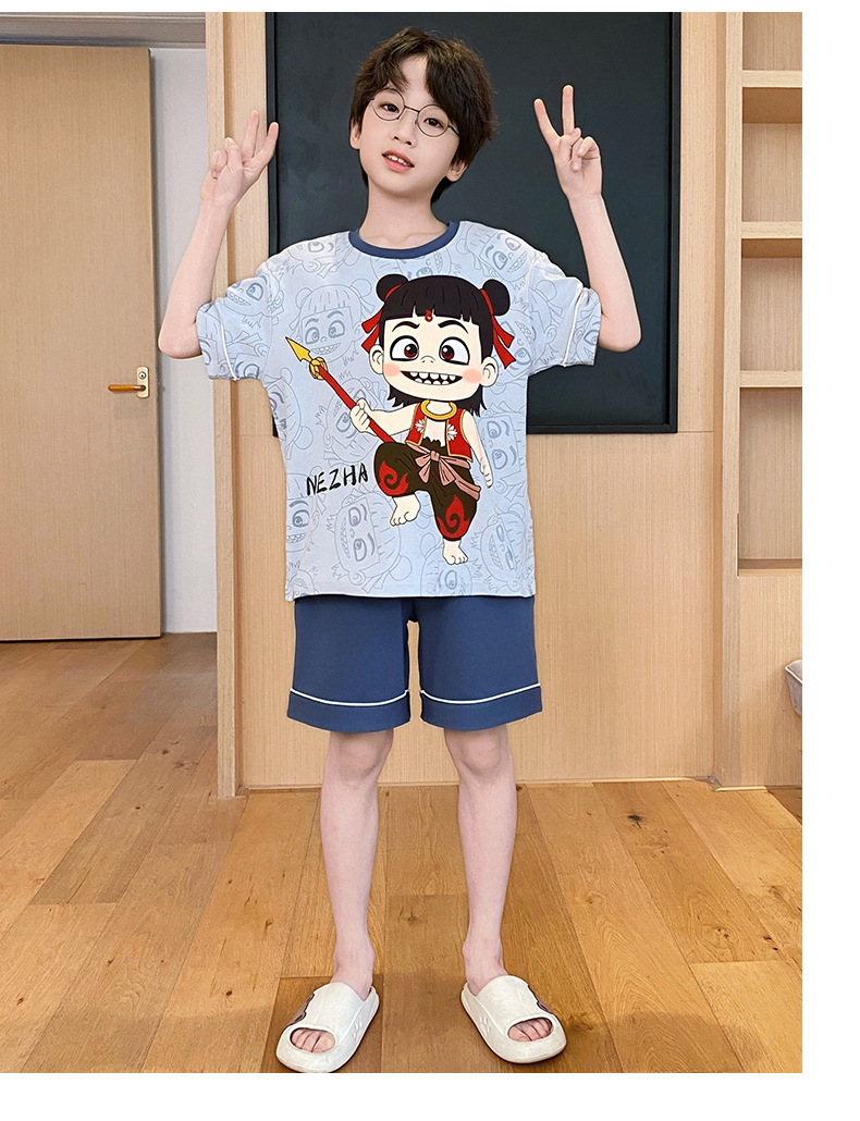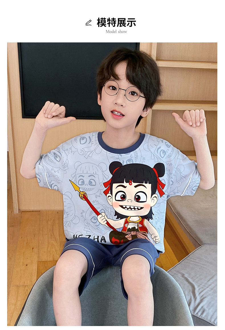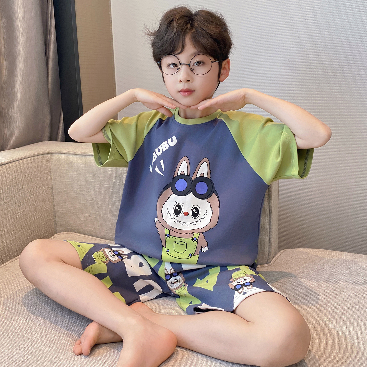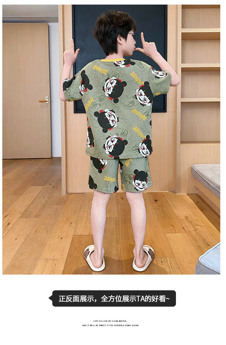 2026년 여름 신상품 남아용 잠옷 반팔 반바지 순면 만화 캐릭터 아동 남아 청소년 부모-자녀 홈웨어스토어 가기