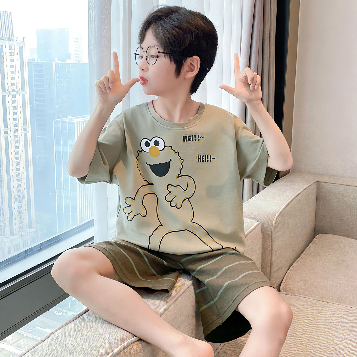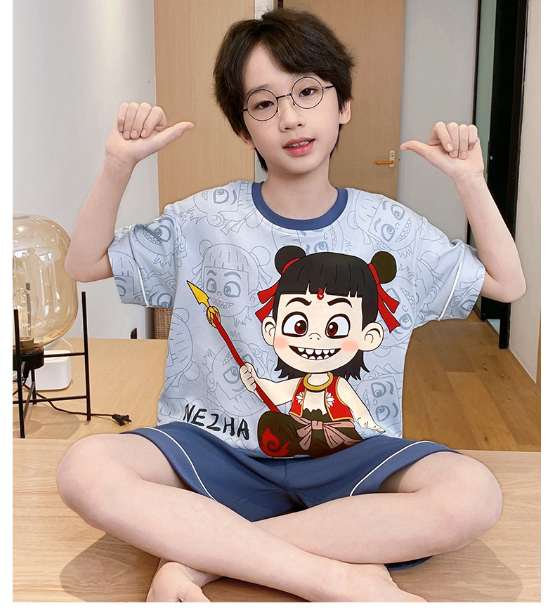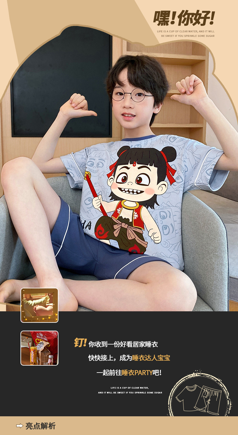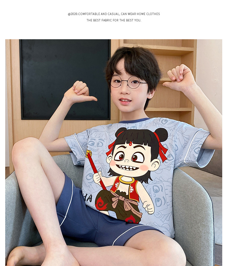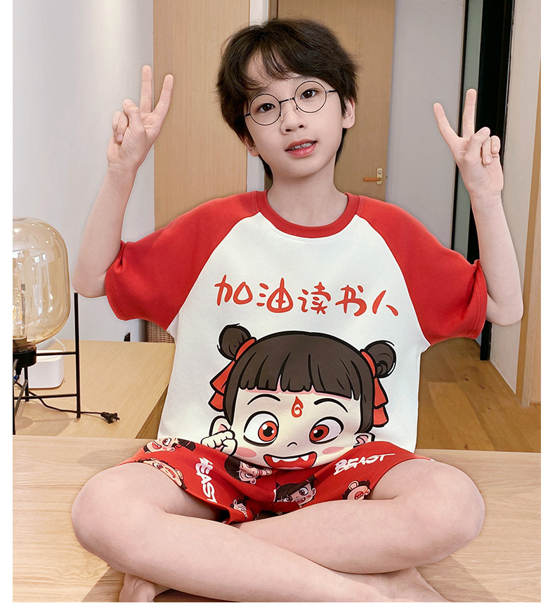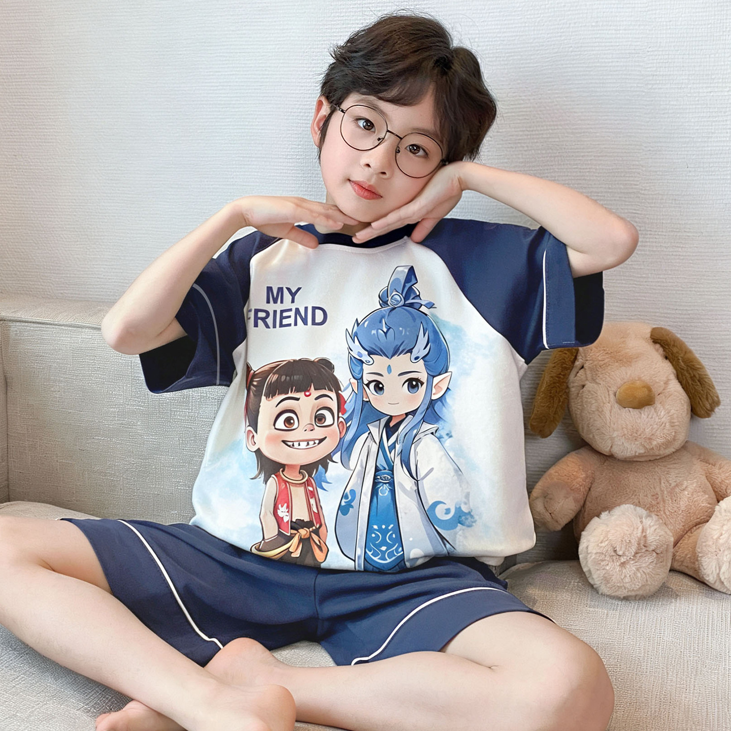 2026년 여름 신상품 남아용 잠옷 반팔 반바지 순면 만화 캐릭터 아동 남아 청소년 부모-자녀 홈웨어스토어 가기