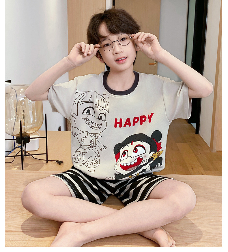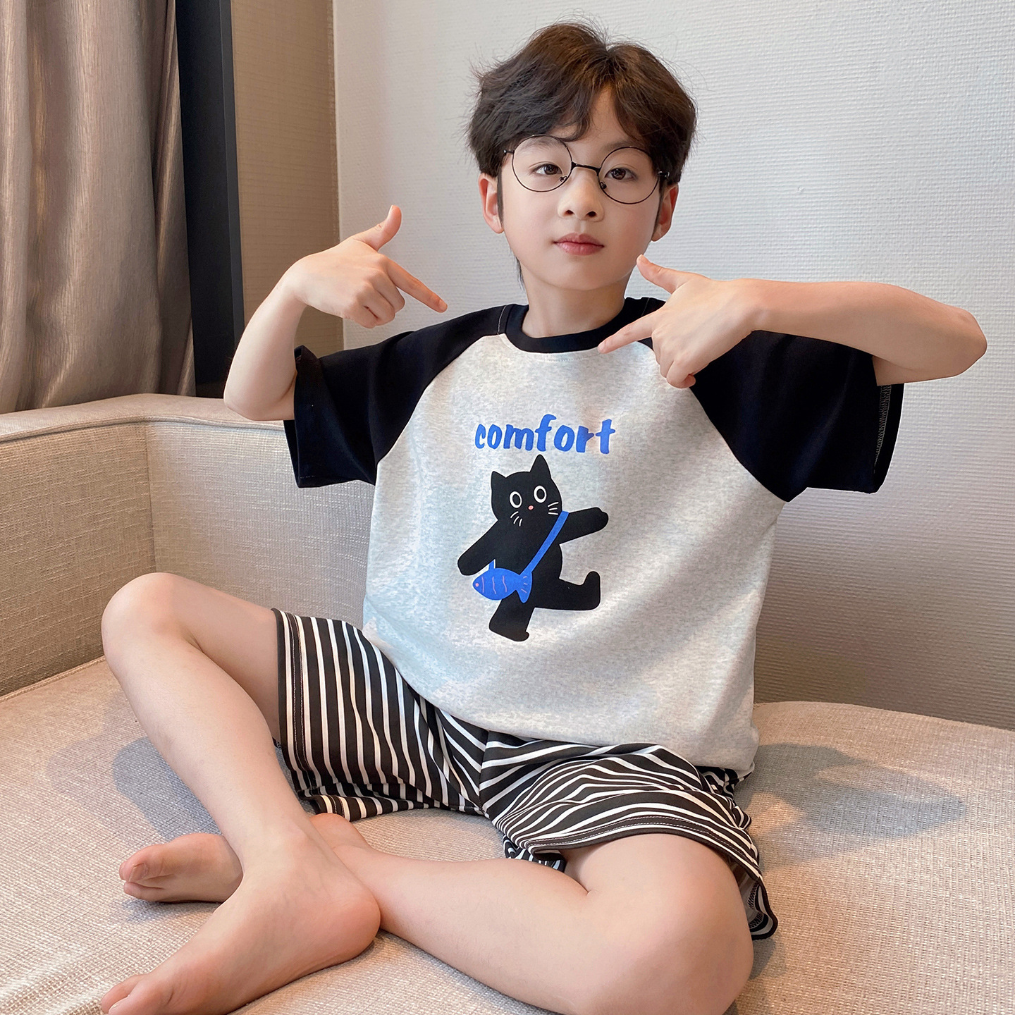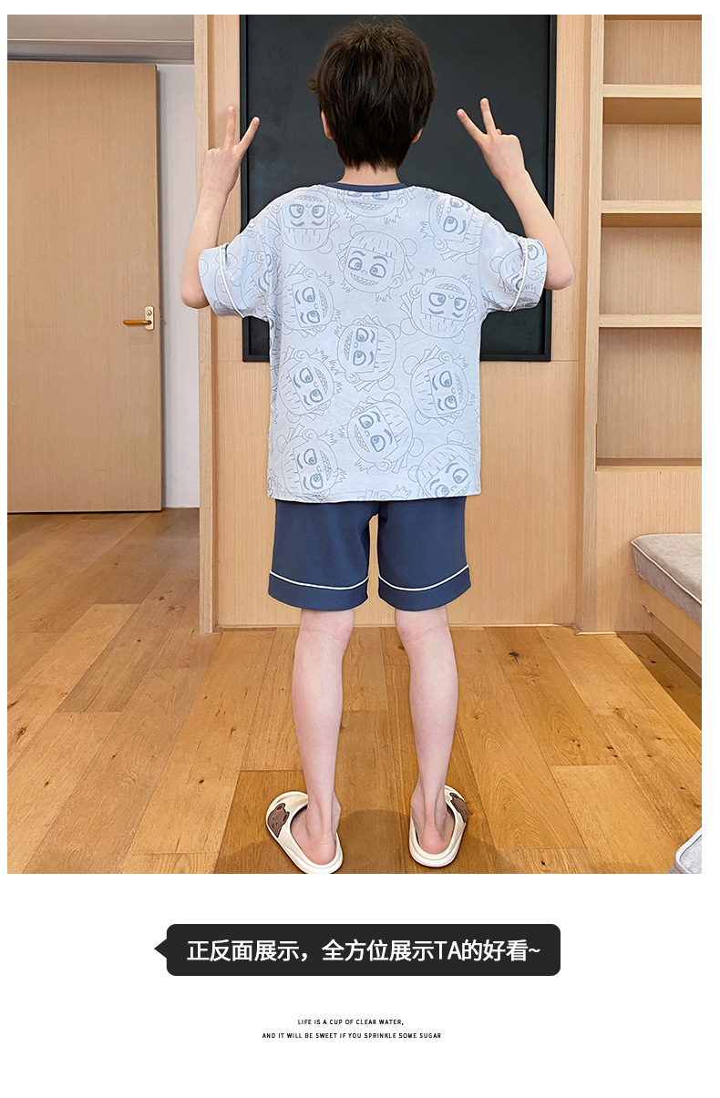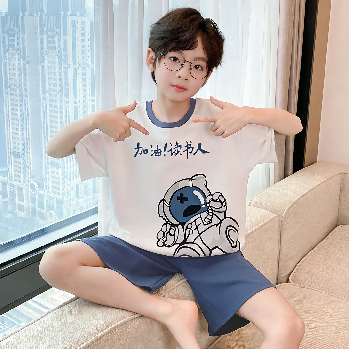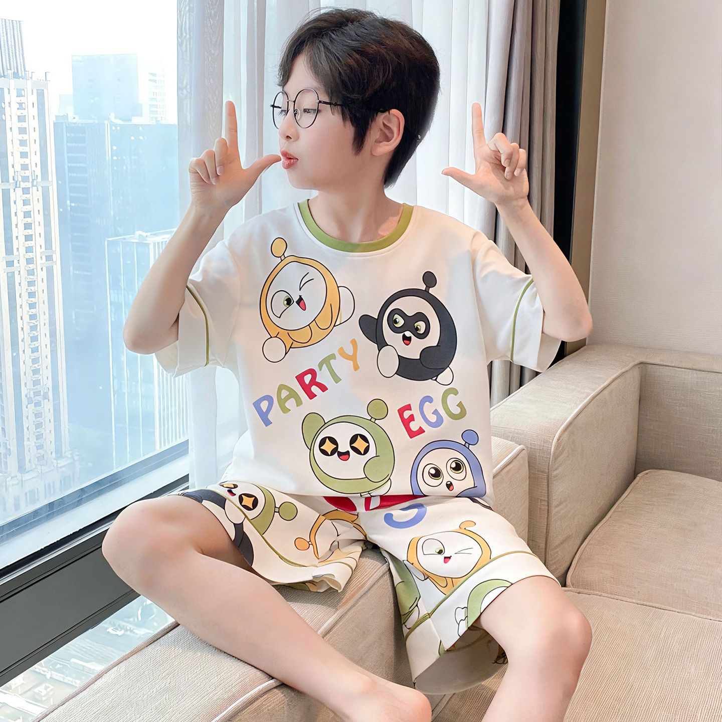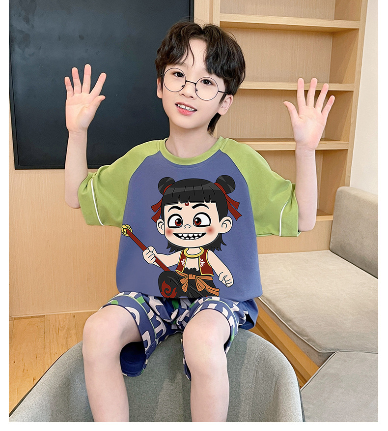 2026년 여름 신상품 남아용 잠옷 반팔 반바지 순면 만화 캐릭터 아동 남아 청소년 부모-자녀 홈웨어스토어 가기