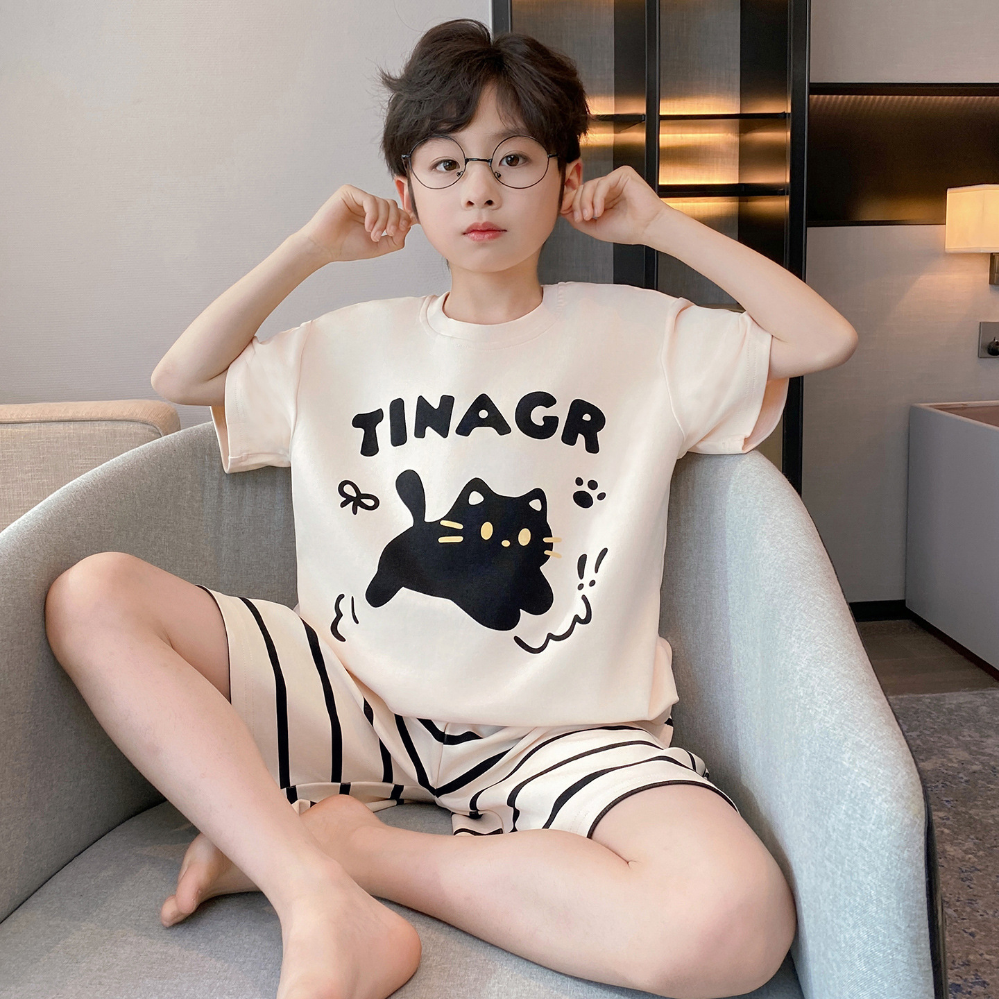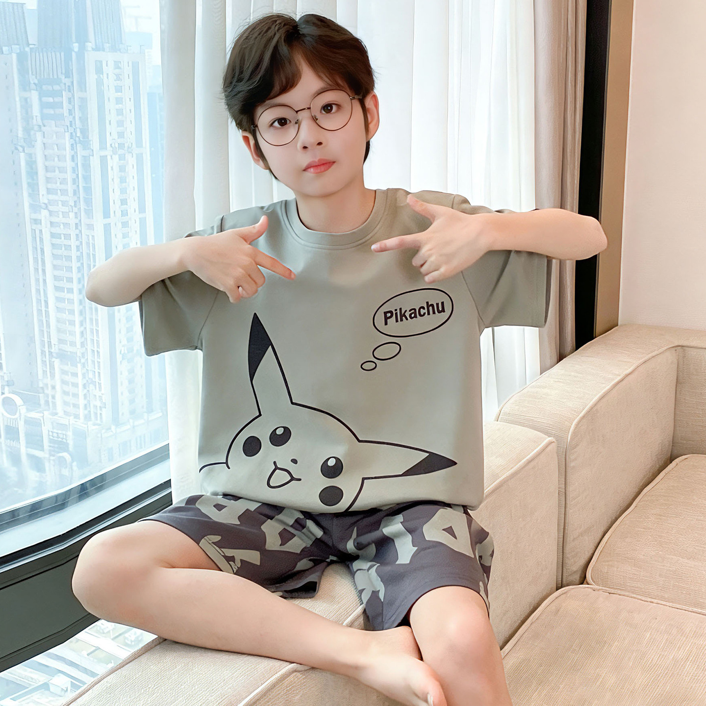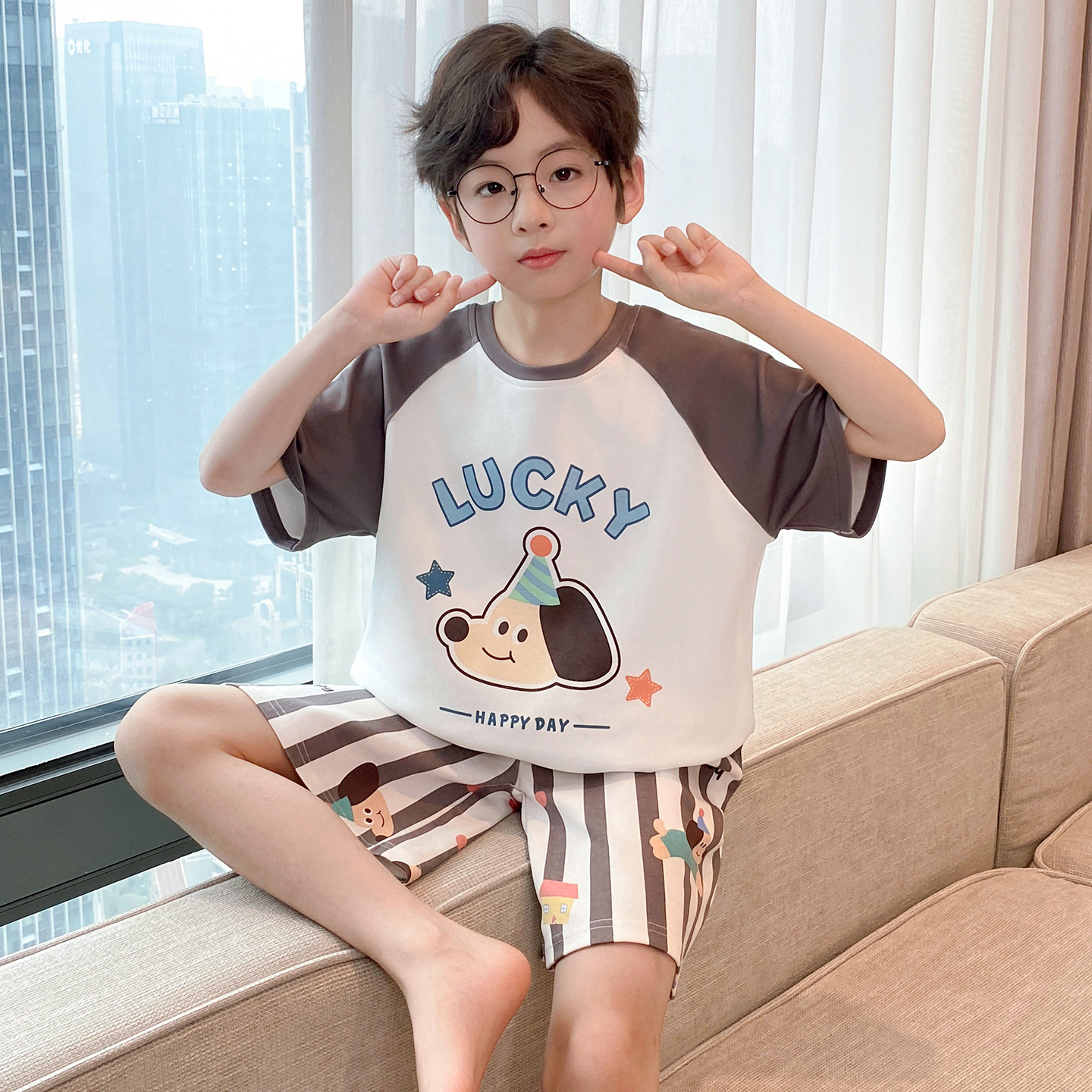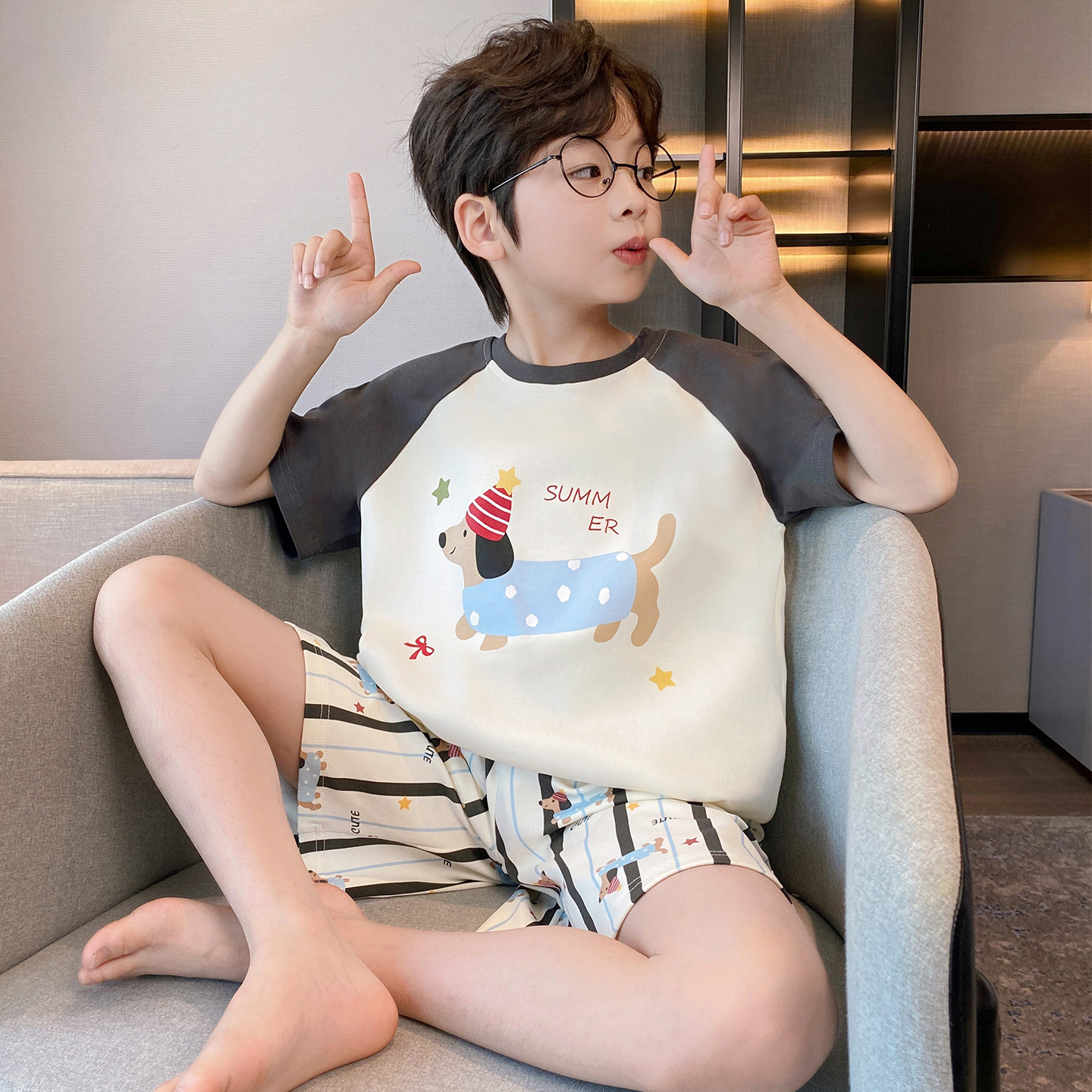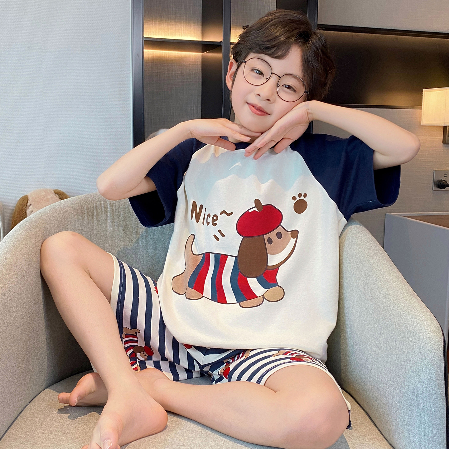 2026년 여름 신상품 남아용 잠옷 반팔 반바지 순면 만화 캐릭터 아동 남아 청소년 부모-자녀 홈웨어스토어 가기