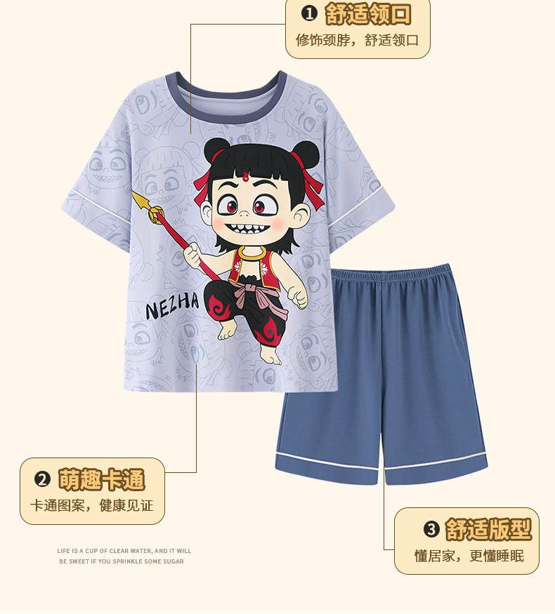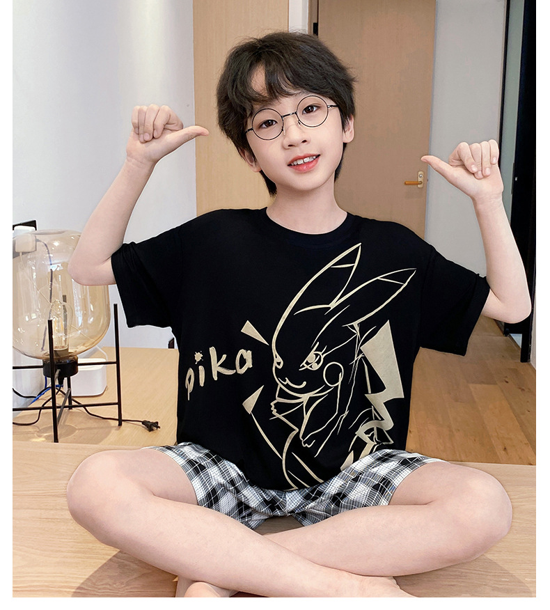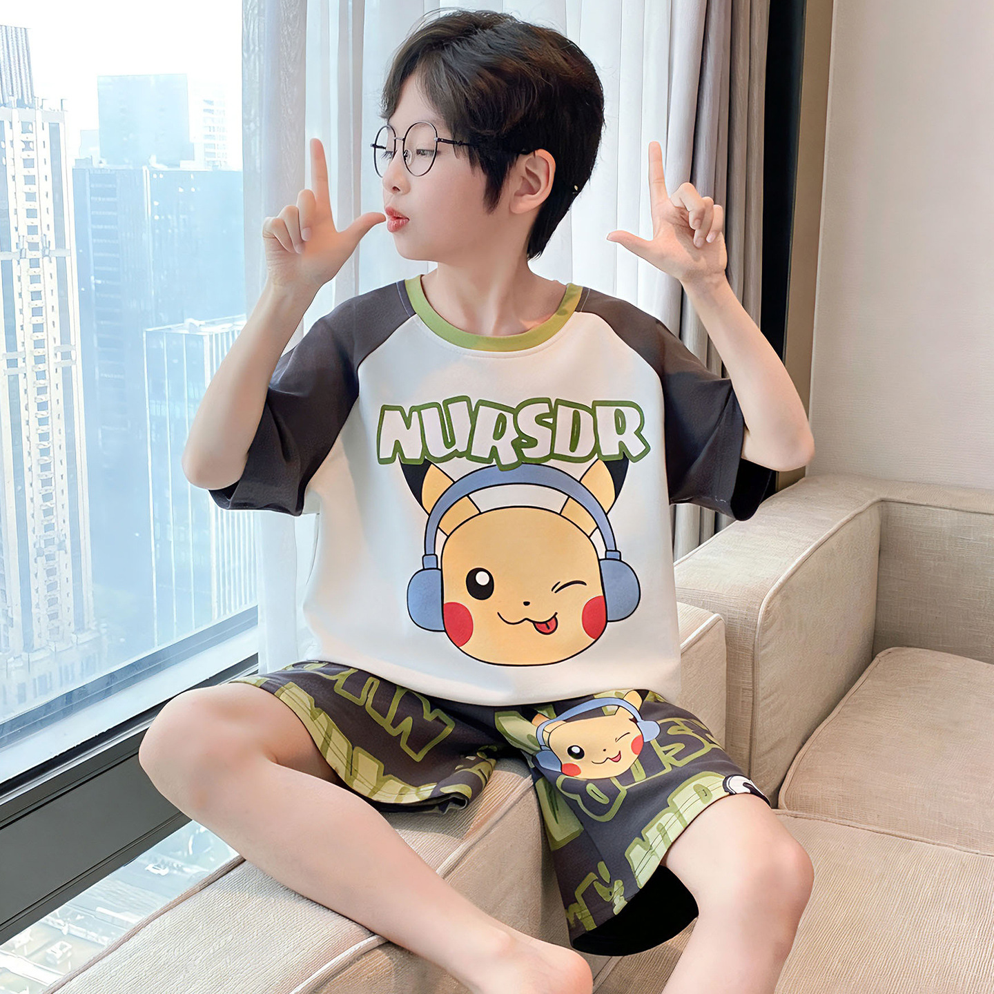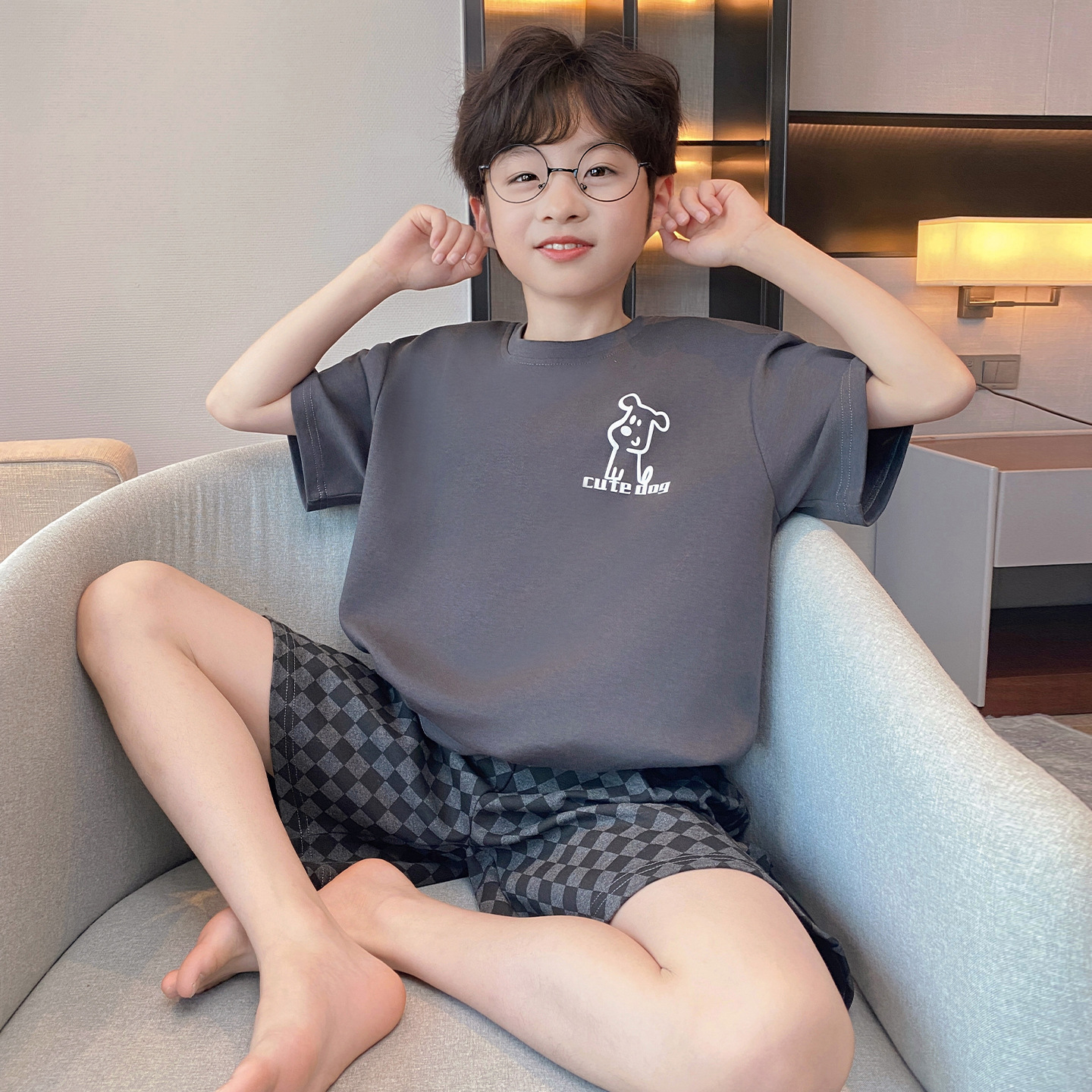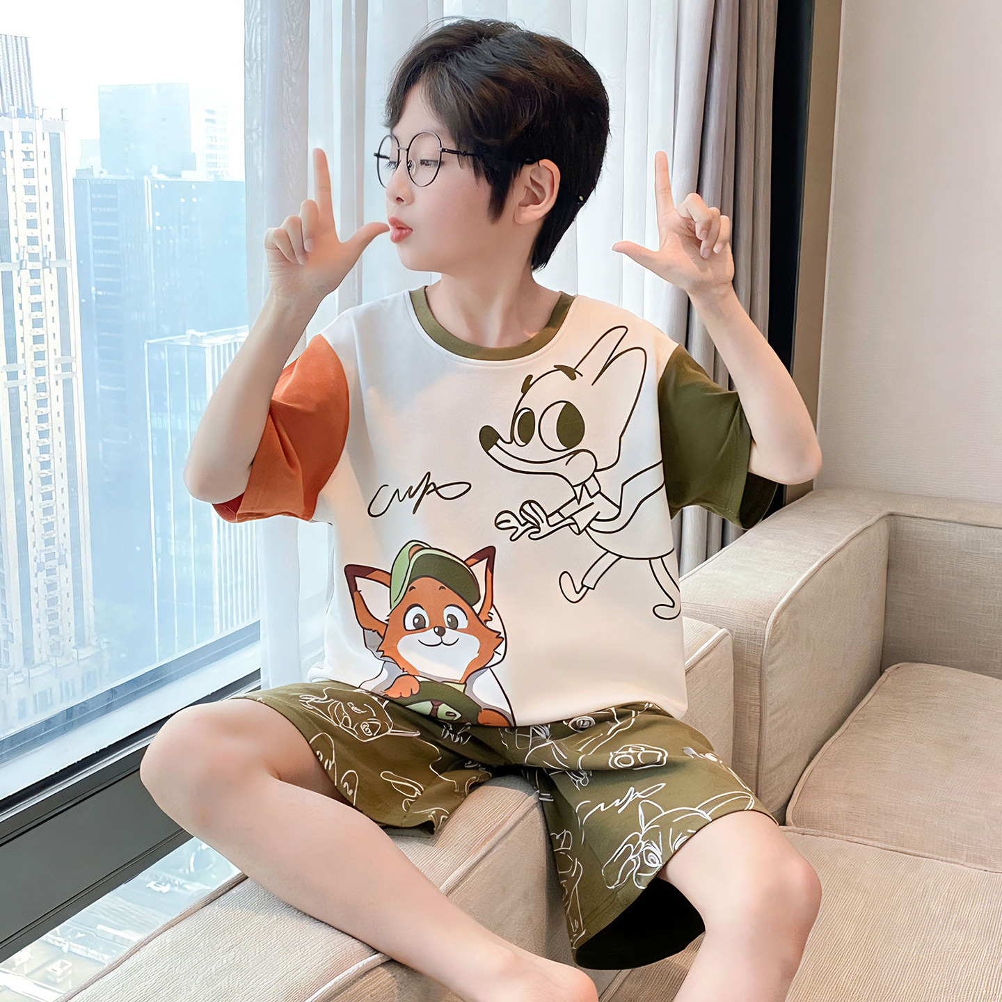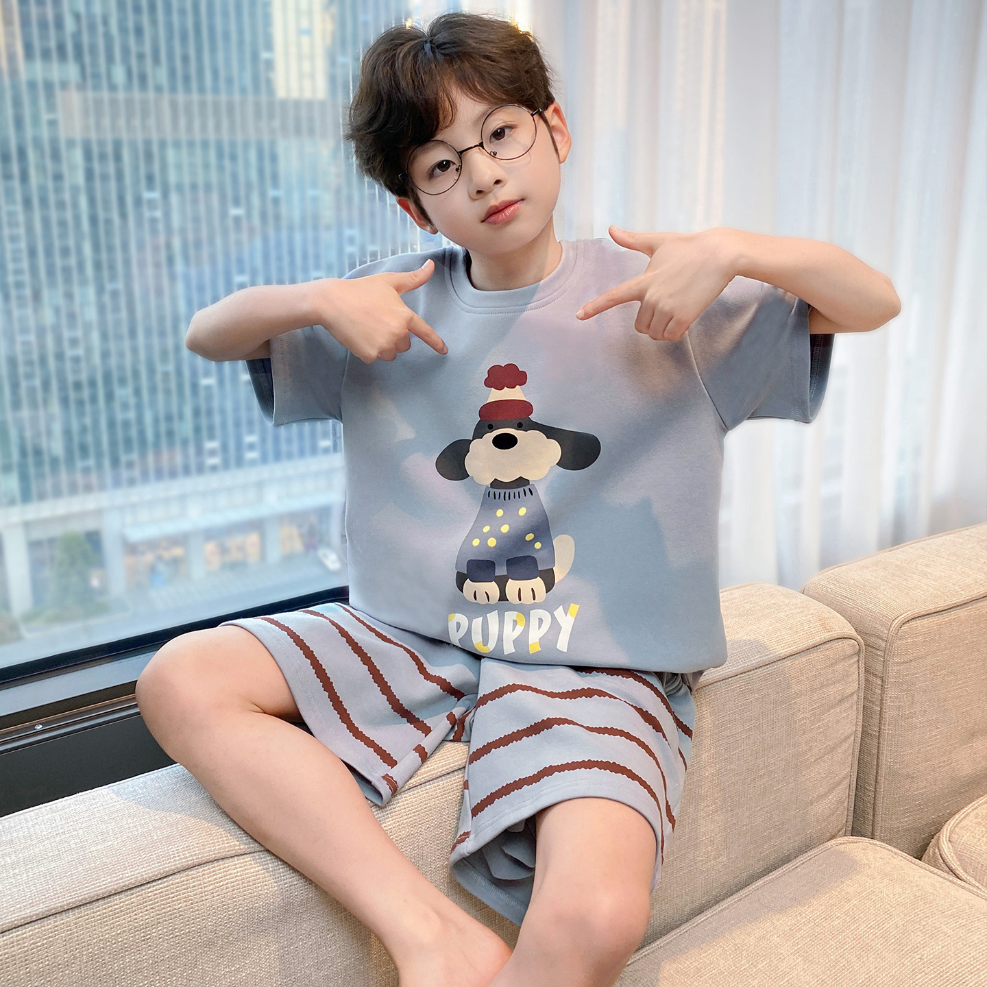 2026년 여름 신상품 남아용 잠옷 반팔 반바지 순면 만화 캐릭터 아동 남아 청소년 부모-자녀 홈웨어스토어 가기