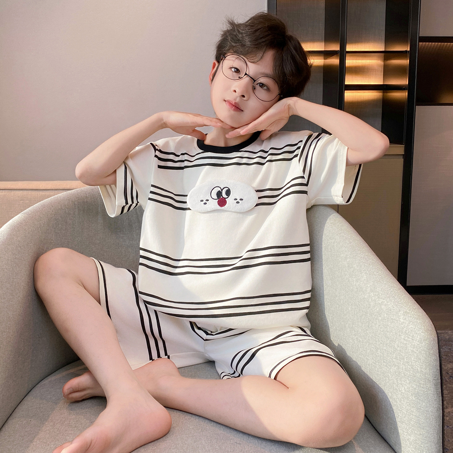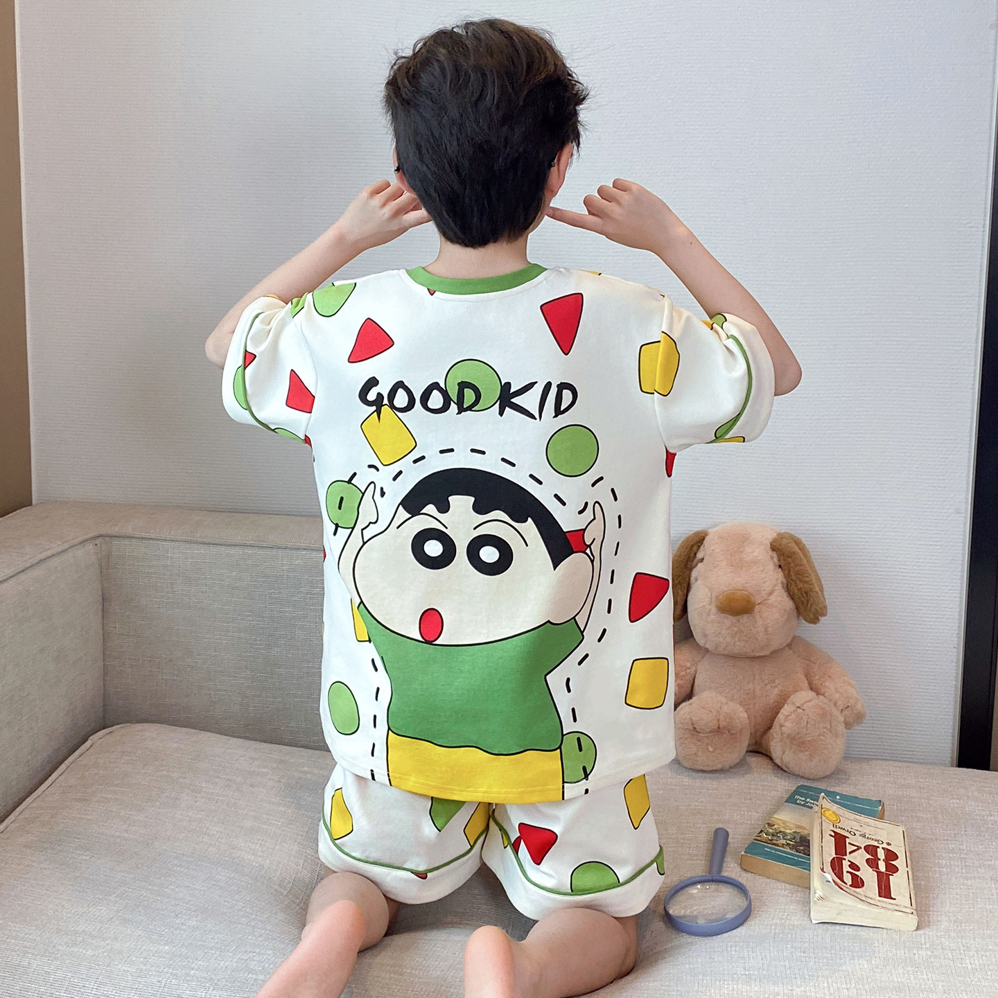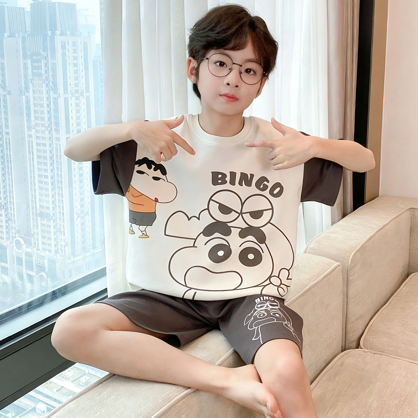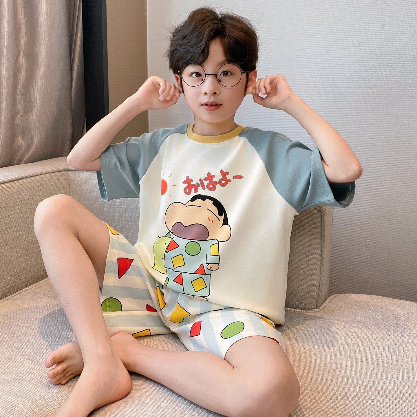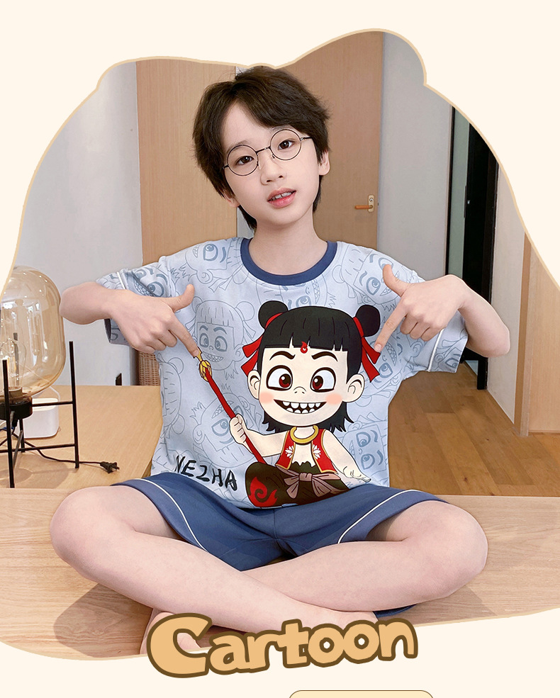 2026년 여름 신상품 남아용 잠옷 반팔 반바지 순면 만화 캐릭터 아동 남아 청소년 부모-자녀 홈웨어