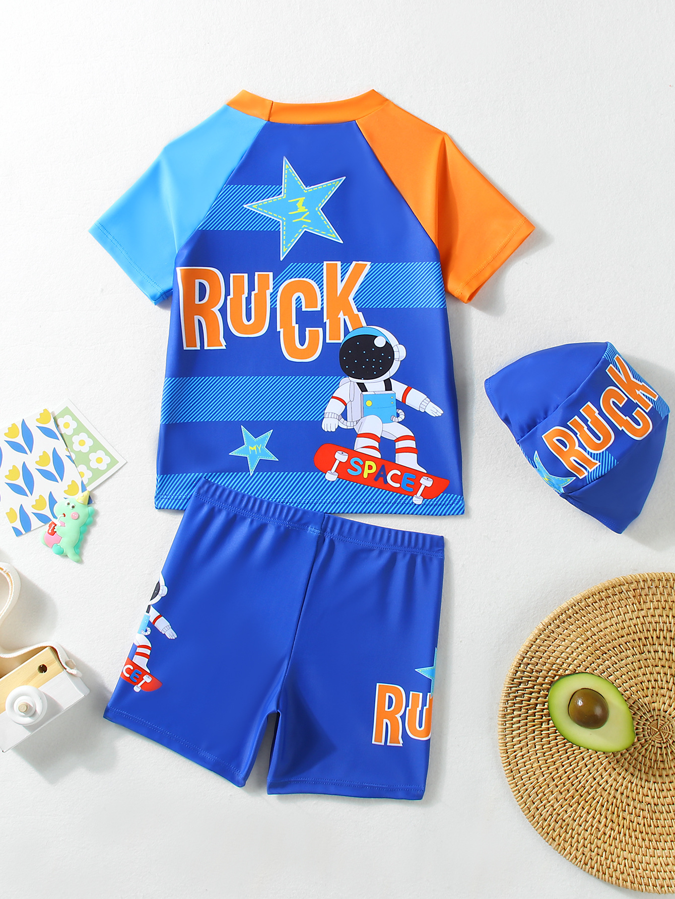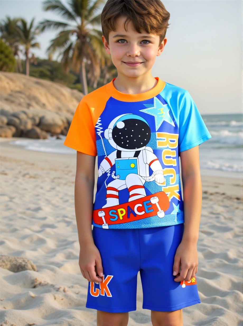어린이 수영복 소년 스플릿 수영복 2025 새로운 우주 비행사 만화 태양 보호 속건 소년 수영복 여름