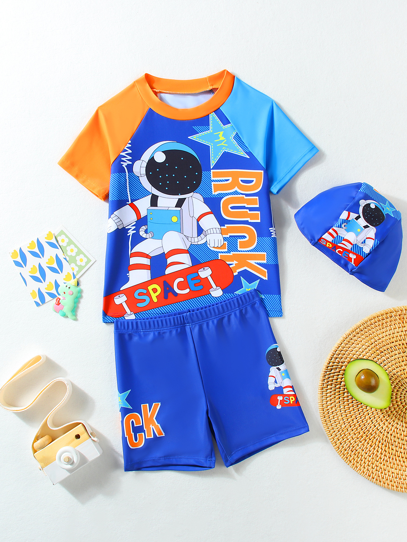 어린이 수영복 소년 스플릿 수영복 2025 새로운 우주 비행사 만화 태양 보호 속건 소년 수영복 여름스토어 가기