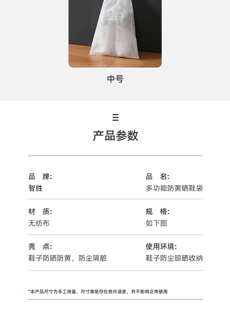 태양 신발 안티 옐로우 가방 신발 보관 가방 흰색 신발 커버 방진 여행 부직포 방습 세척 및 건조 신발 가방