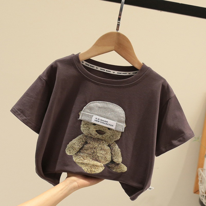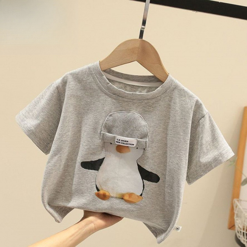 아기 어린이 착용 소년의 여름 반팔 티셔츠 아기의 귀여운 핸들 반팔 티셔츠