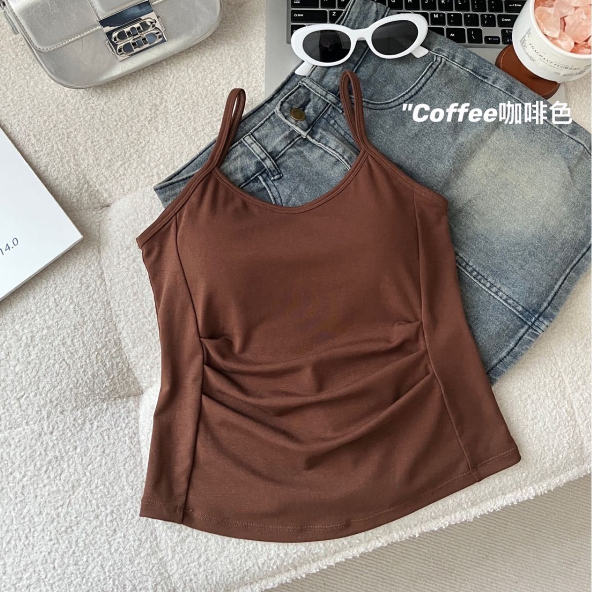 여름 여성 Lyocell 쿨 슬링 내부 착용 슬리밍 아름다운 백브라 프리 조끼 민소매 베이스 탑스토어 가기