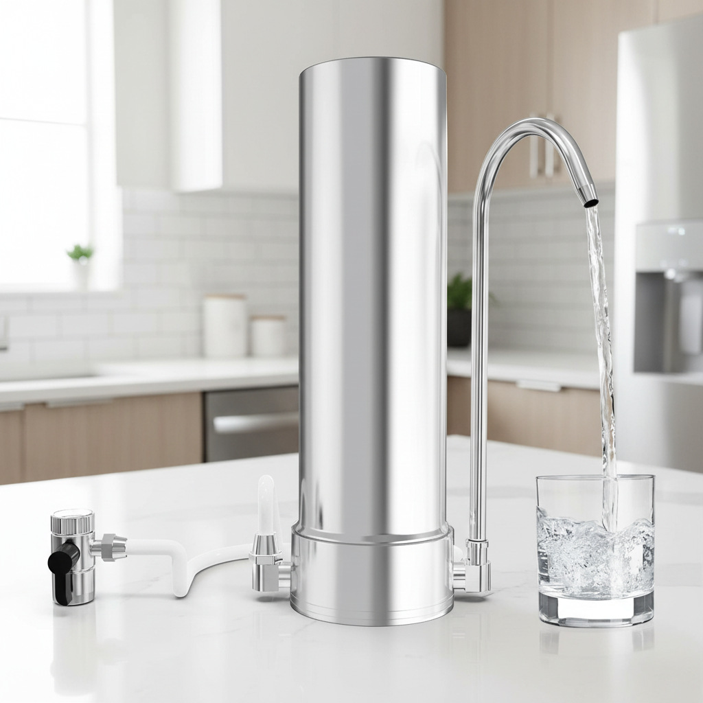 구멍이 없는 이동식 조리대 초미세 여과 정수기 식품 등급 304 스테인레스 스틸 쉘 가정용 직접 마시기 가능