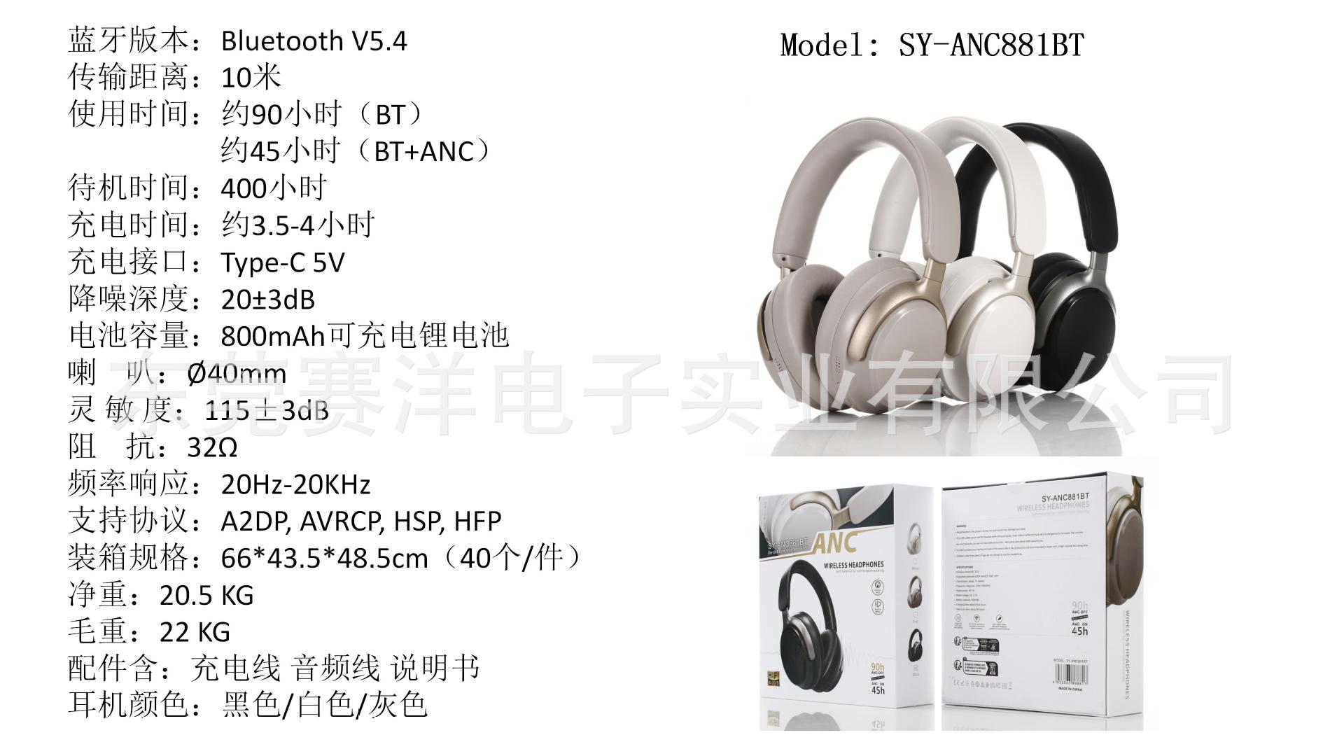 머리 장착형 ANC 능동형 소음 감소 Bluetooth 헤드셋 높은 배터리 수명 스포츠 러닝 접이식 V5.4 공장 직접 판매스토어 가기