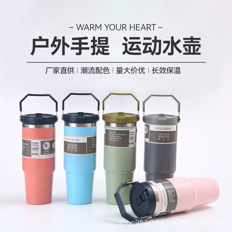 국경 간 인기 30oz 핸들 자동차 컵 대용량 얼음 컵 진공 이중층 스테인레스 스틸 절연 컵 자동차 보관