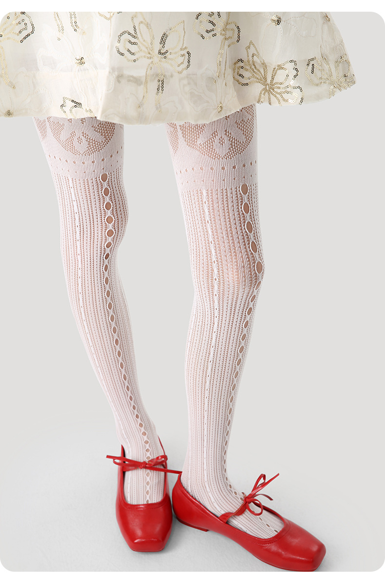 르네상스 화이트 레이스 JK 빈티지 수직 줄무늬 여성 양말 자카드 실크 스타킹 봄과 여름 얇은 팬티 스타킹