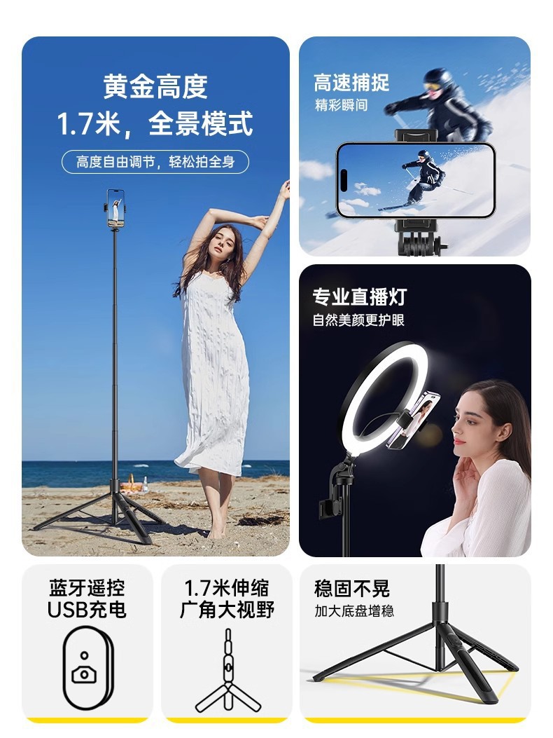 WP (대량 할인) 새로운 휴대폰 셀카봉 삼각대 360도 회전 여행 휴대용 범용스토어 가기