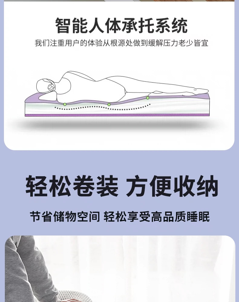 • 싱글침대 : 150*190cm [척추보호 및 수면보조, 무너짐 보상]