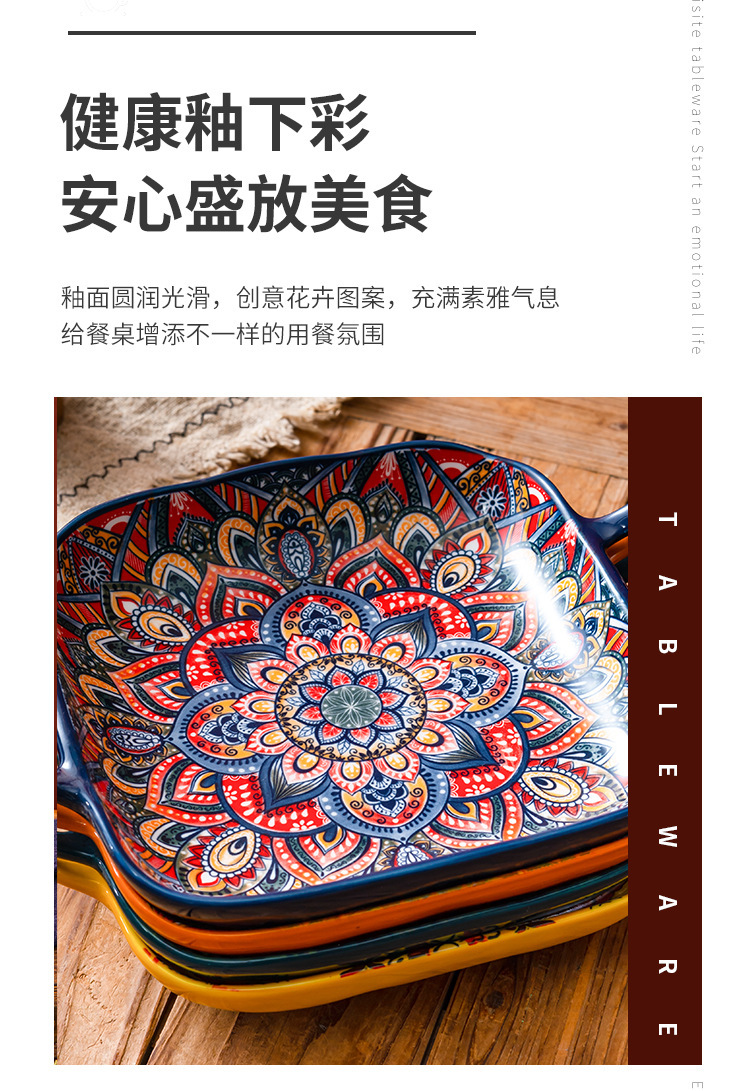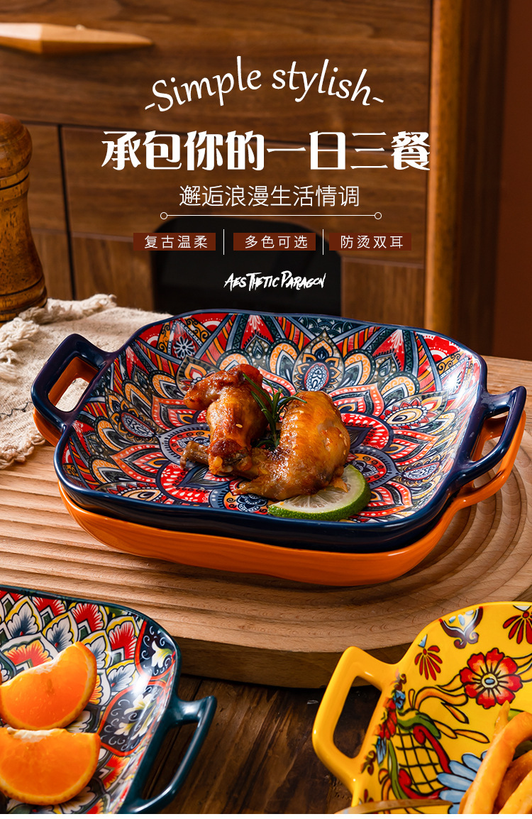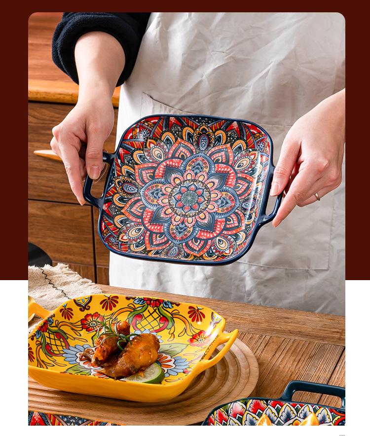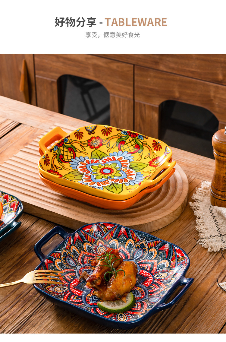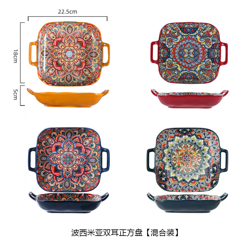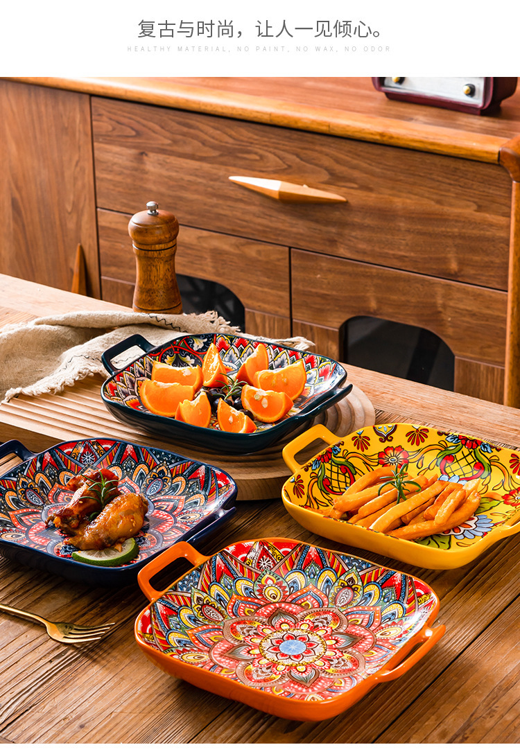 보헤미안 비나 럴 스퀘어 세라믹 플레이트 국경 폭발 창조적 인 가정용 플레이트 과일 Psta 플레이트 볶음 플레이트스토어 가기
