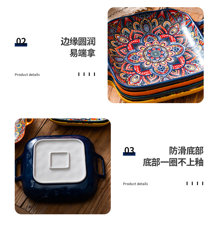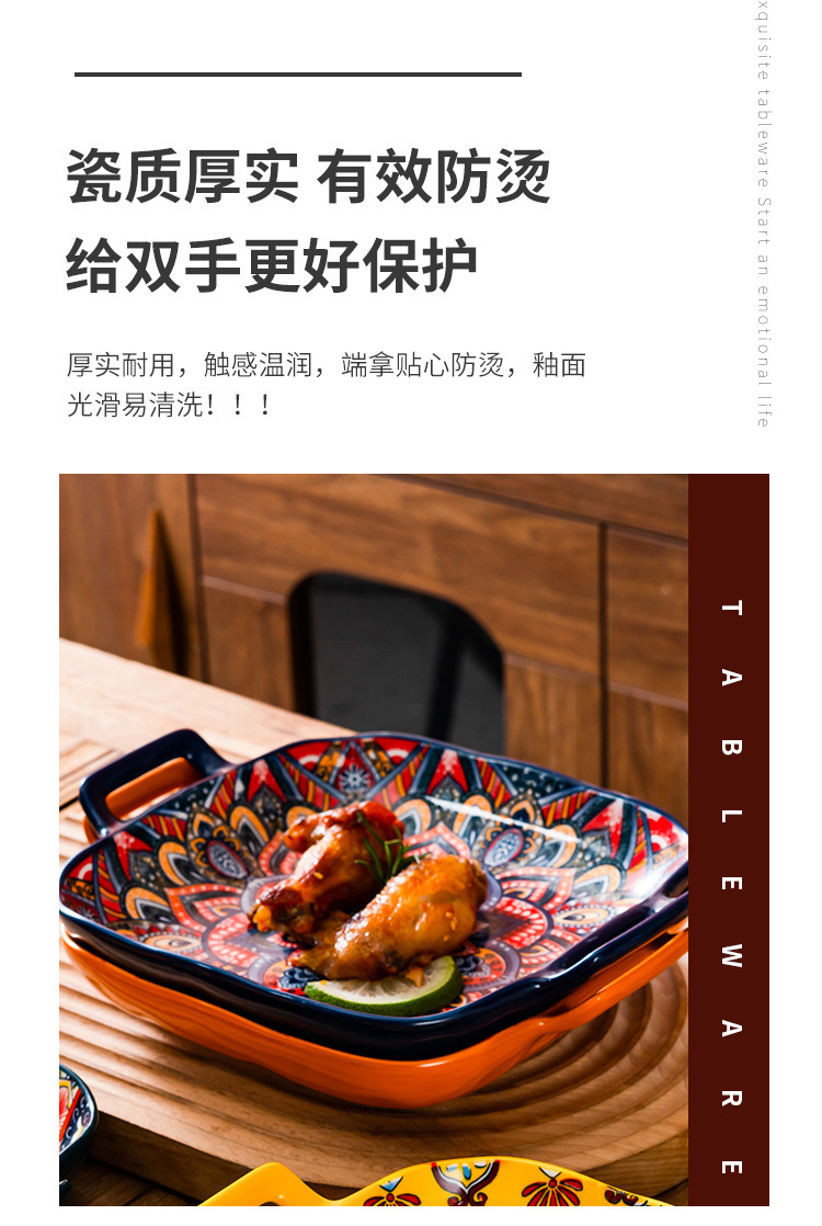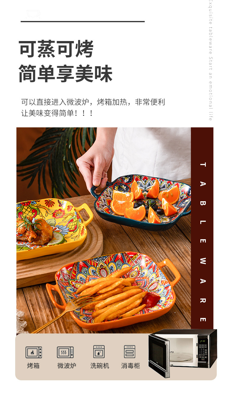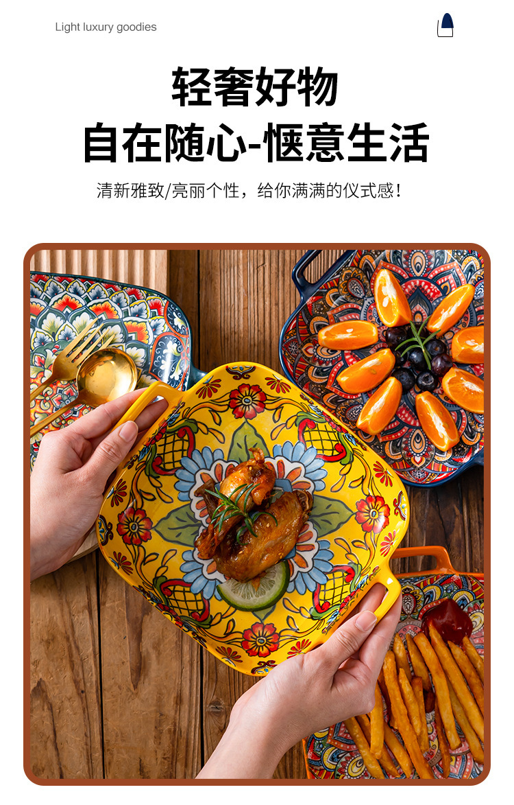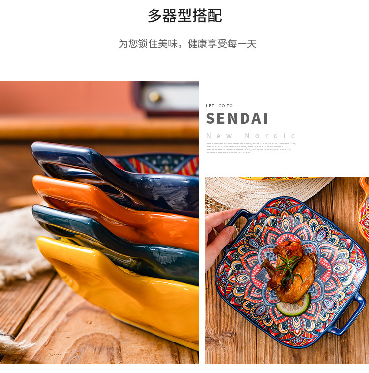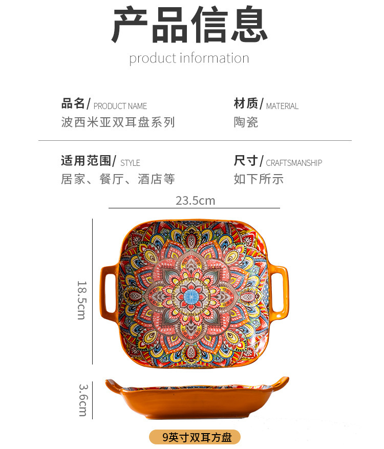 보헤미안 비나 럴 스퀘어 세라믹 플레이트 국경 폭발 창조적 인 가정용 플레이트 과일 Psta 플레이트 볶음 플레이트스토어 가기