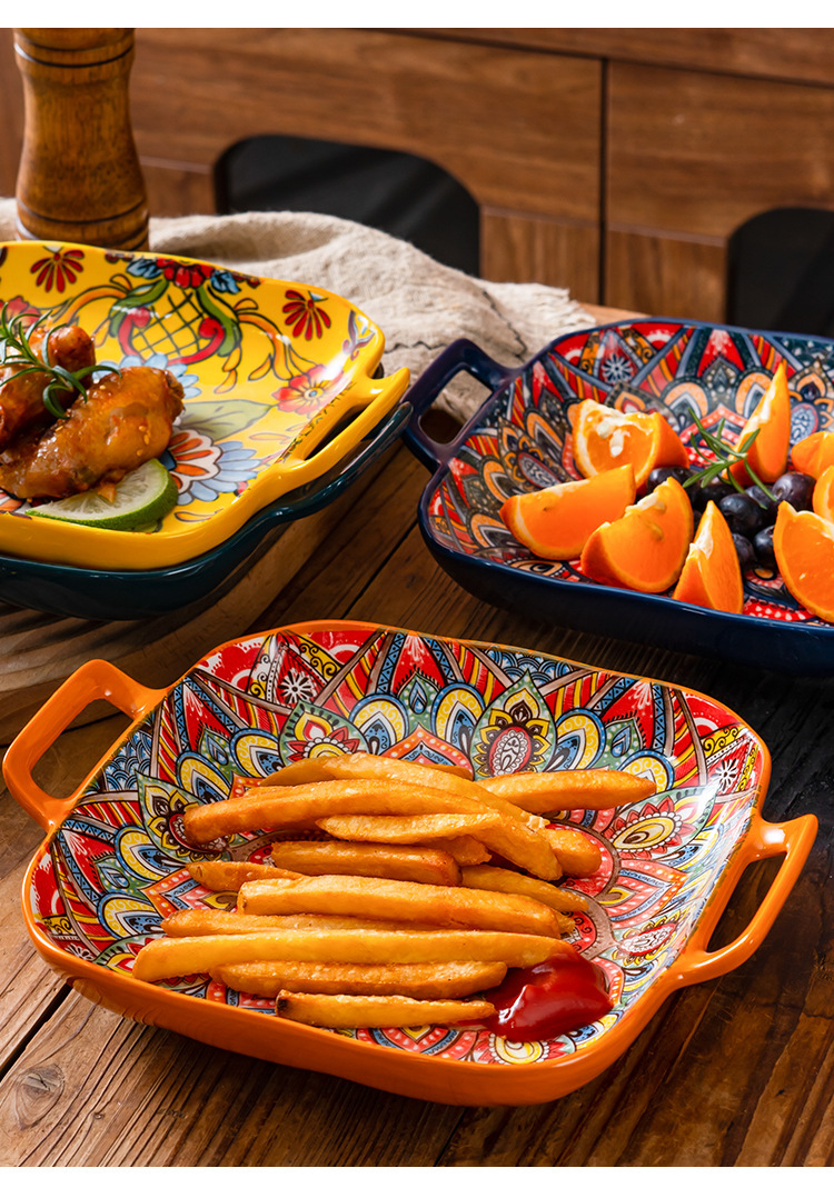 보헤미안 비나 럴 스퀘어 세라믹 플레이트 국경 폭발 창조적 인 가정용 플레이트 과일 Psta 플레이트 볶음 플레이트