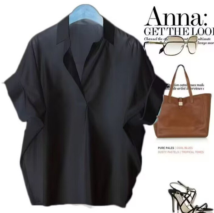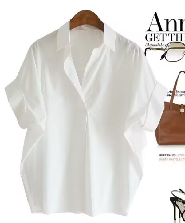 빈티지 홍콩 스타일 짧은 소매 셔츠 여성의 여름 새로운 스타일 올 매치 화이트 셔츠 느슨한 가슴 소매 칼라 탑