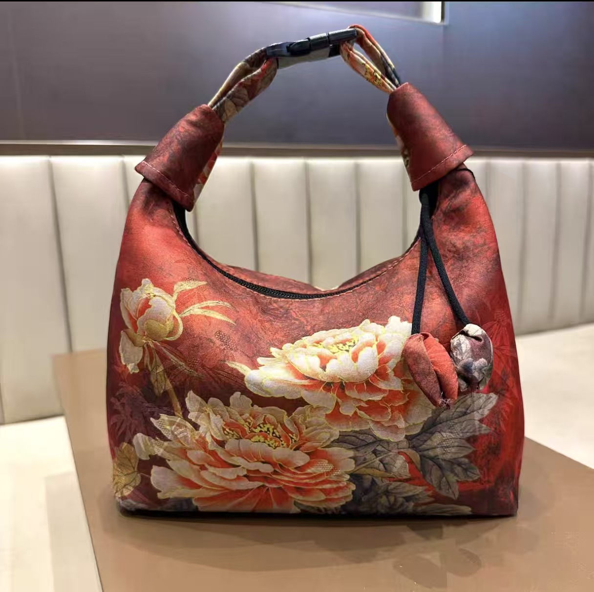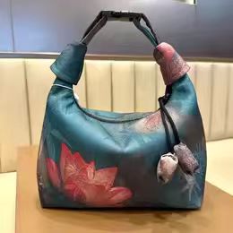 Xiangyun 원사 크레센트 백 크로스 바디 백 중국 스타일 빈티지 드로우 스트링 올매치 장식 핸드백