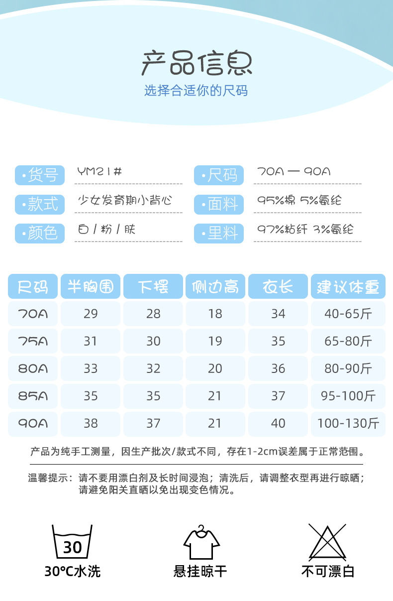 여아 속옷 발달기 10-14세 여아 중학생 브라 순면 초등학생 아동용 확장 조끼