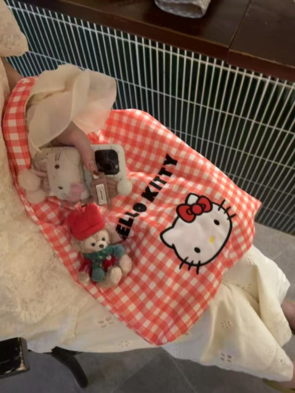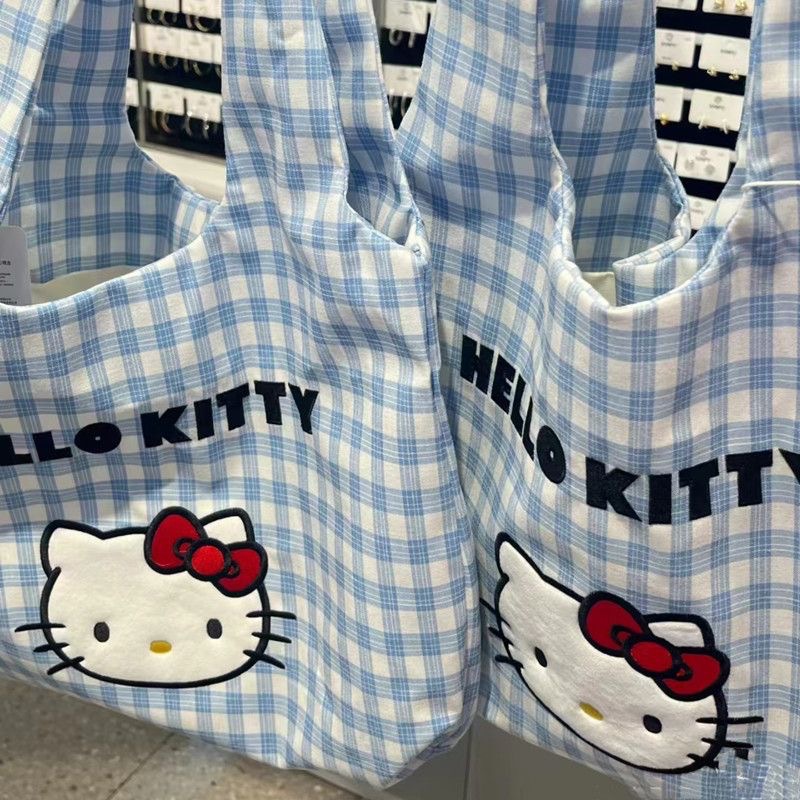 • kt 블루 체크무늬 천가방