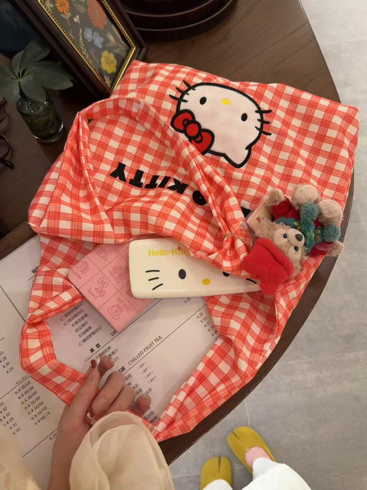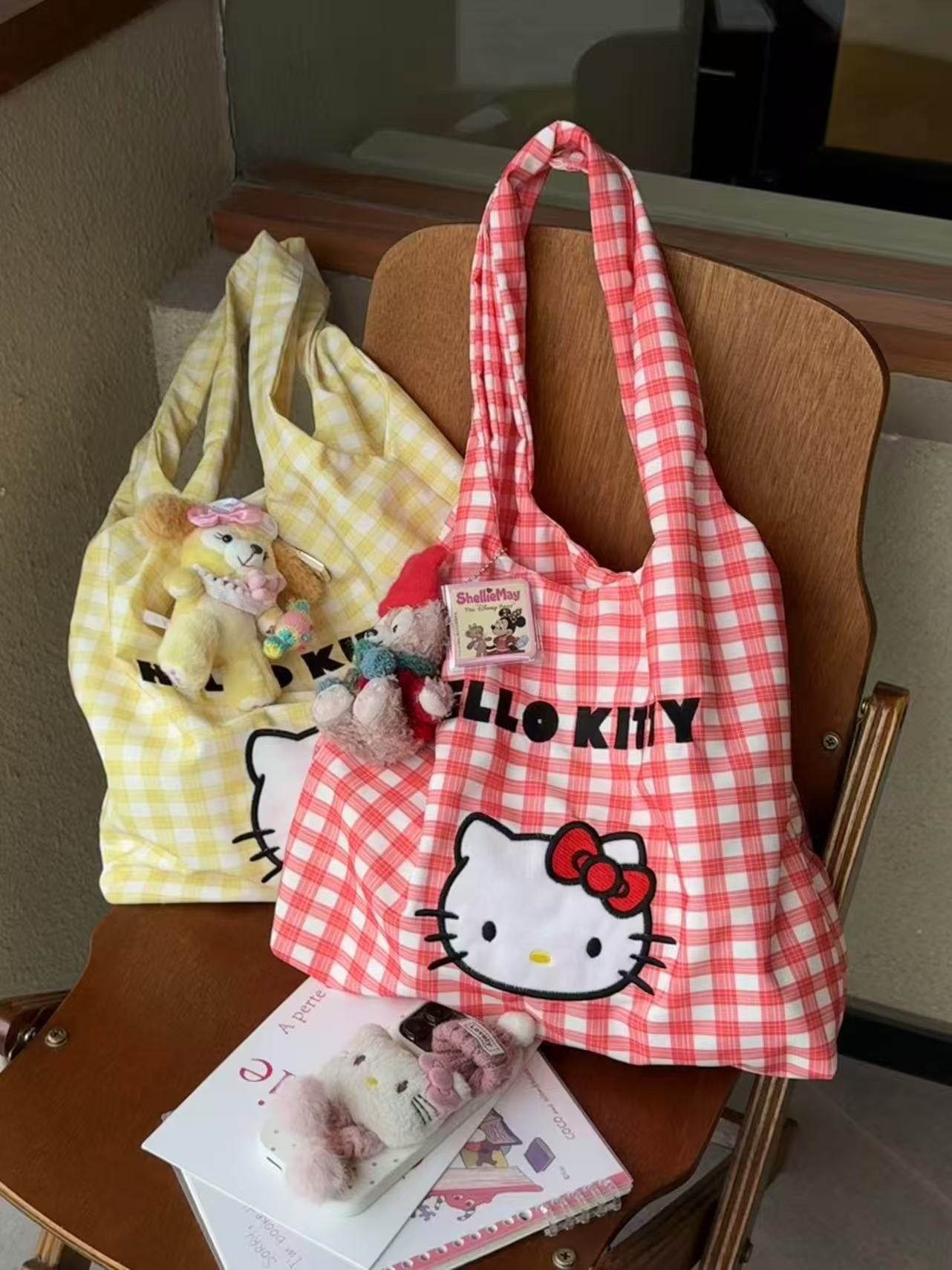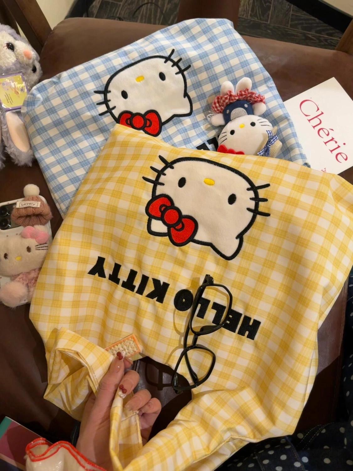• kt 옐로우 체크무늬 천가방