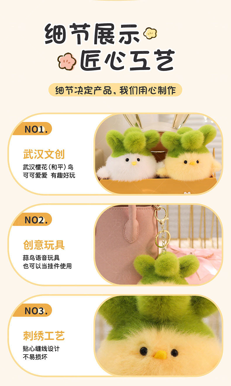 벚꽃 보컬 마늘 새 인형 우한 에웬 추앙, 후베이 여행 봉제 장난감 인형 펜던트 키 체인 기념스토어 가기