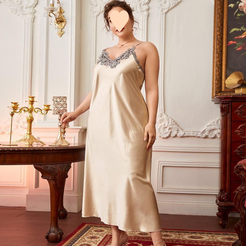 Fat Sister 150kg 플러스 사이즈 얇은 레이스 스플 라이스 서스펜더 스커트 여성용 긴 느슨한 배꼽 커버 침대 스커트 홈웨어