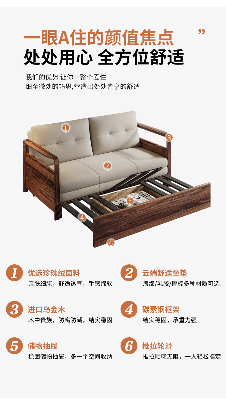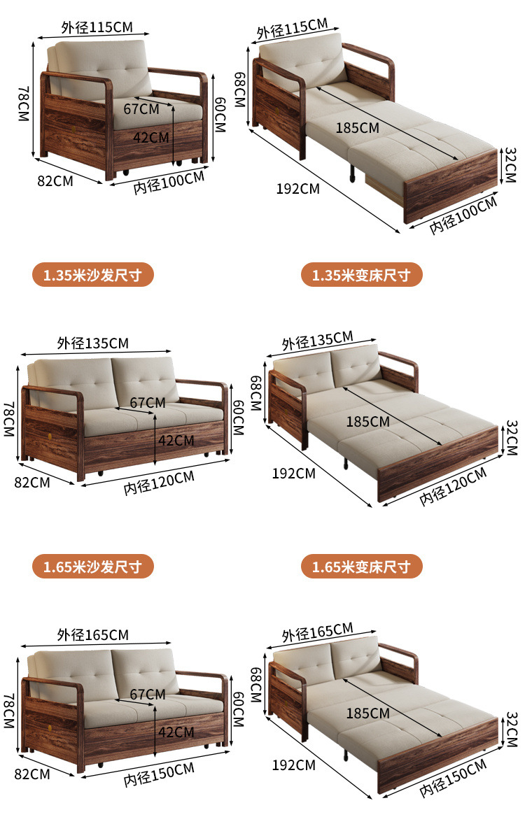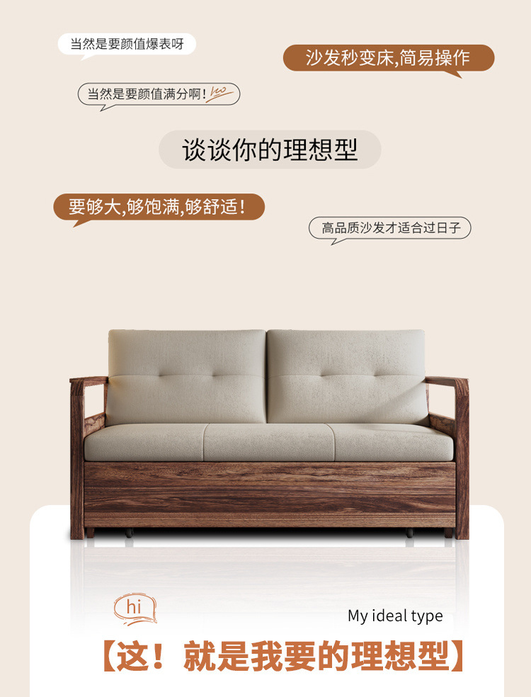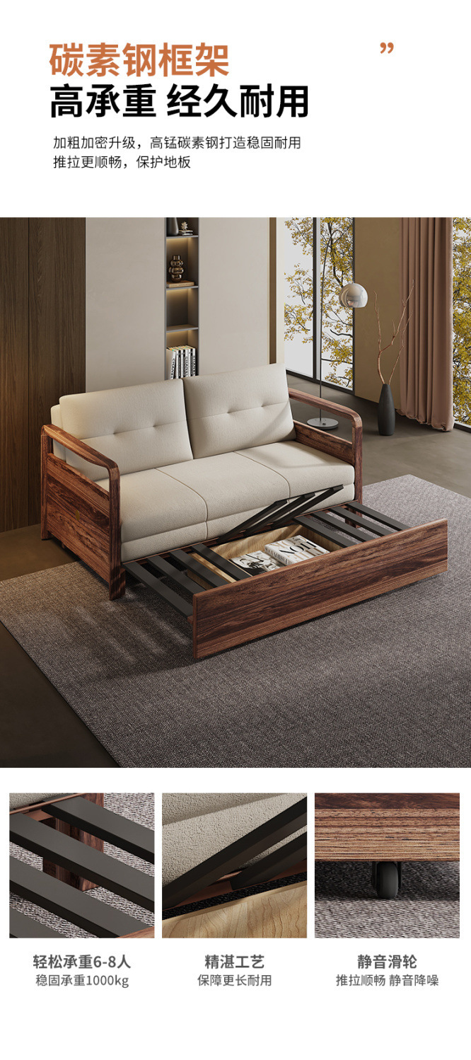단단한 나무 접히는 소파 침대 이중 목적 중국식 가정용 작은 아파트 망원경 거실 두 배 다기능 침실 및 연구스토어 가기