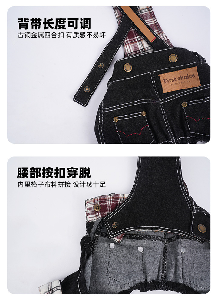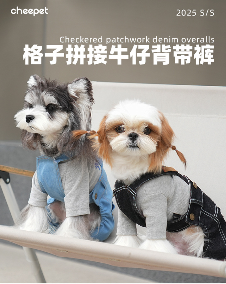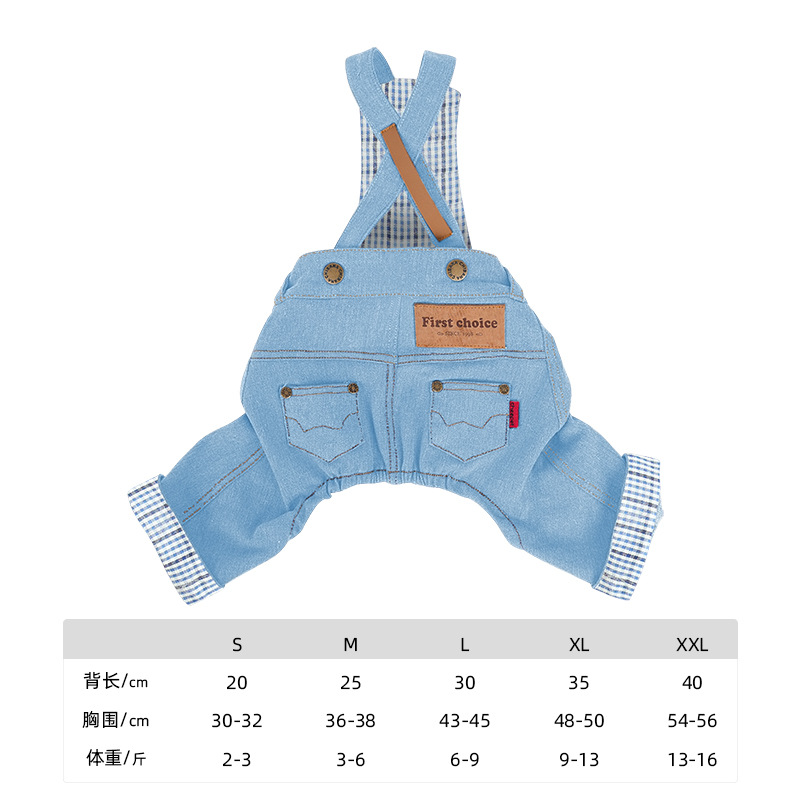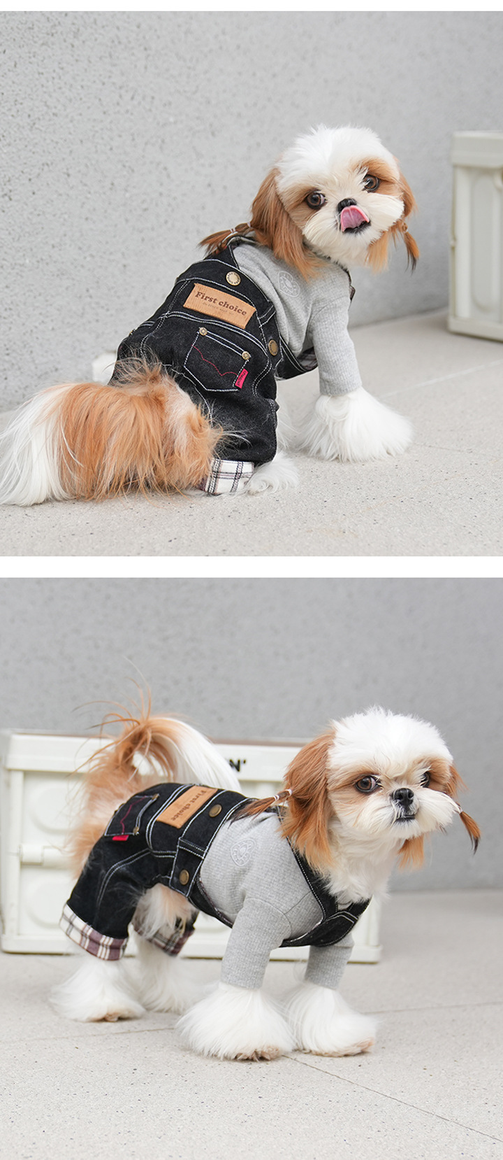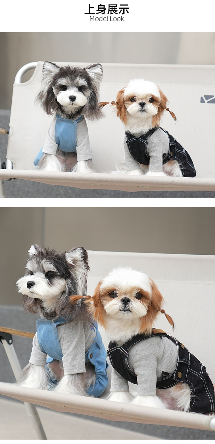 강아지 옷 봄과 여름 외부 착용 기본 올 매치 데님 스트랩 팬츠 Schnery Bixie 안티 파울링 애완견 워킹 세트