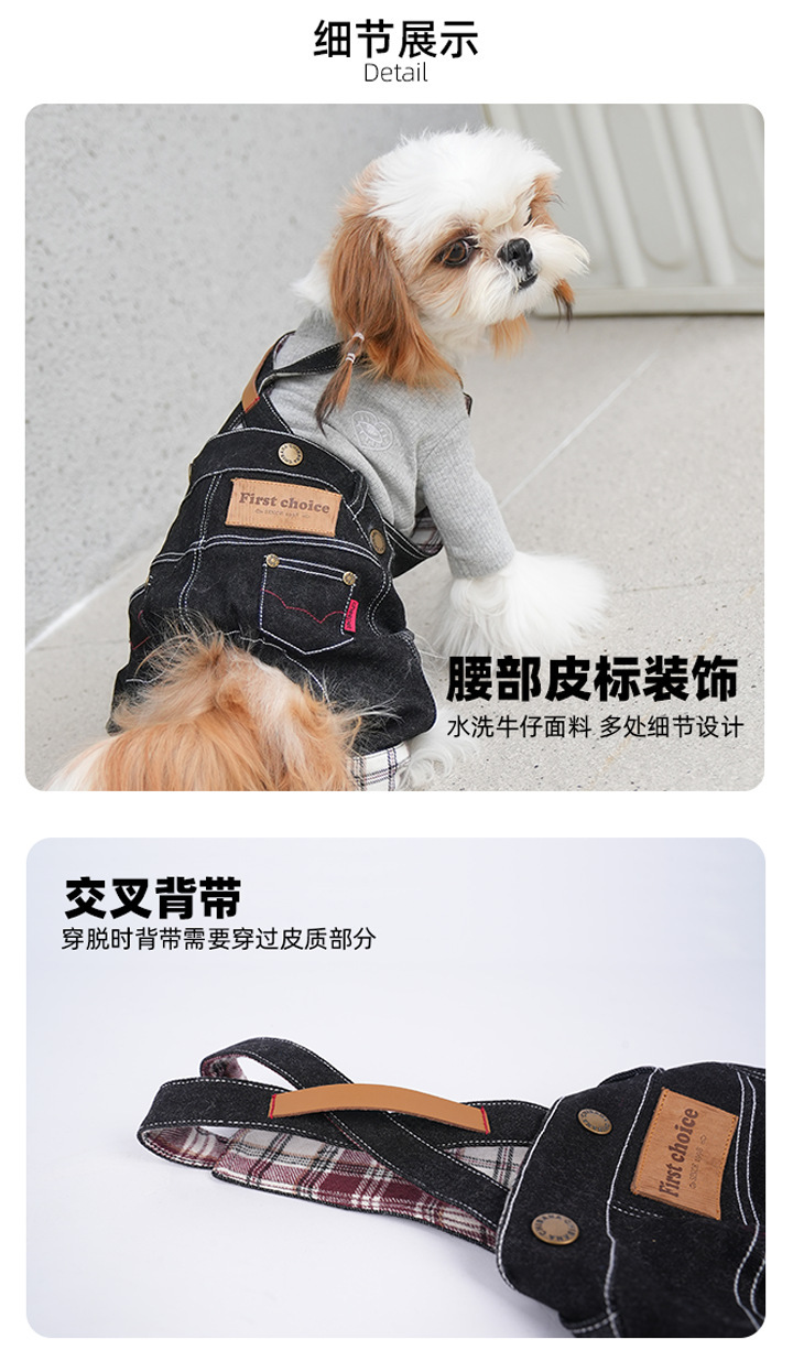 강아지 옷 봄과 여름 외부 착용 기본 올 매치 데님 스트랩 팬츠 Schnery Bixie 안티 파울링 애완견 워킹 세트스토어 가기