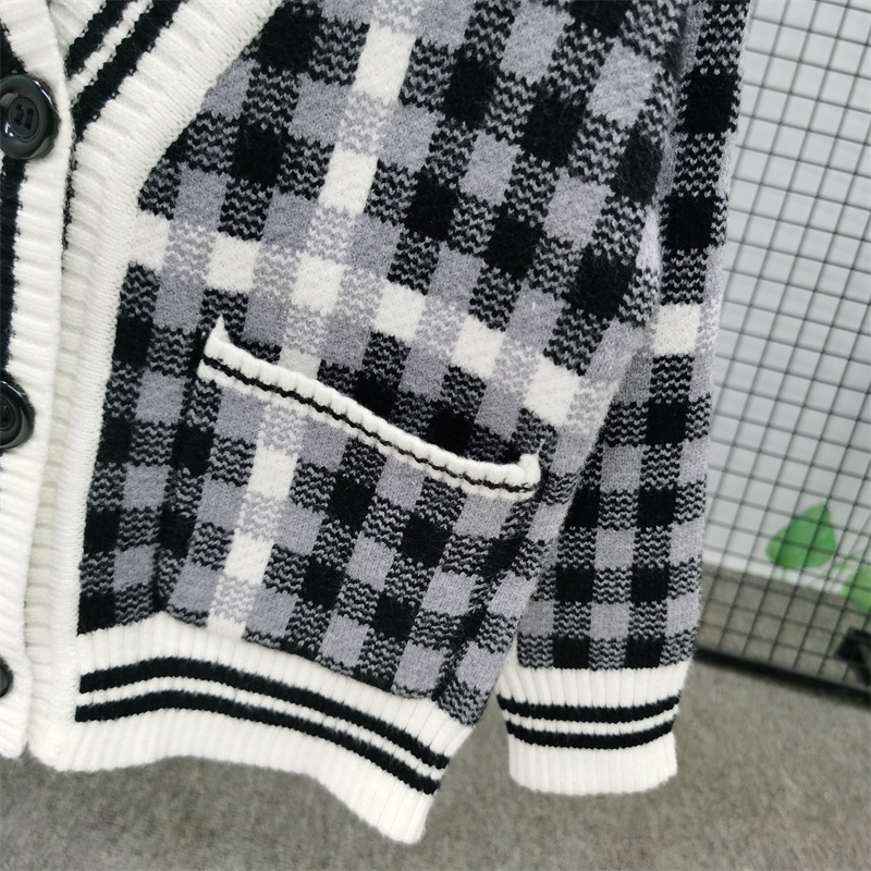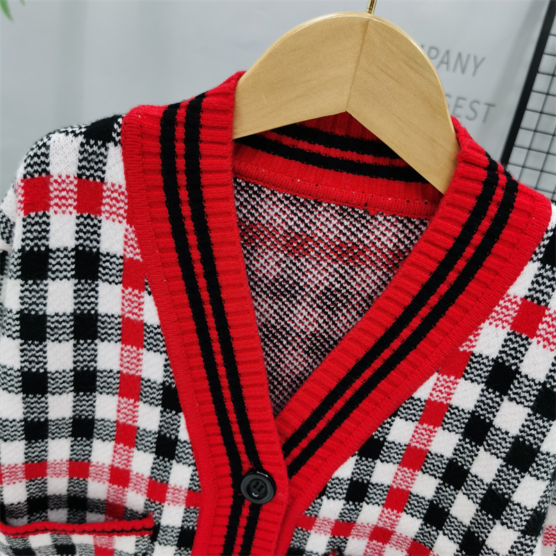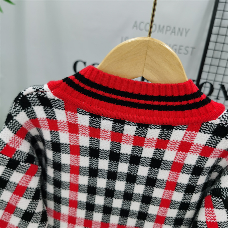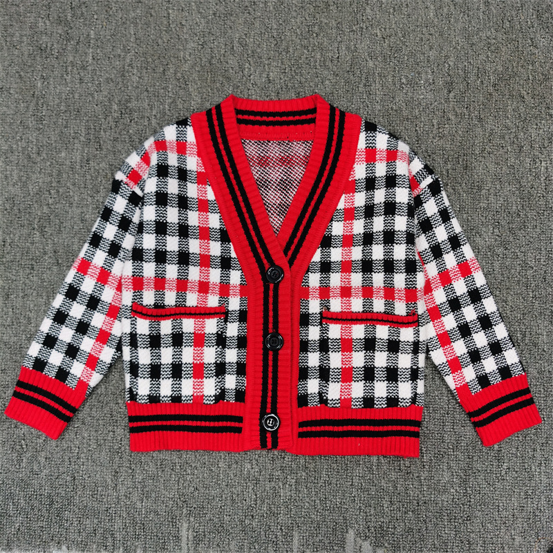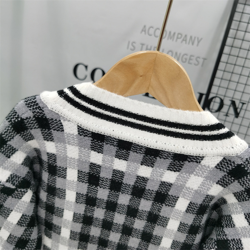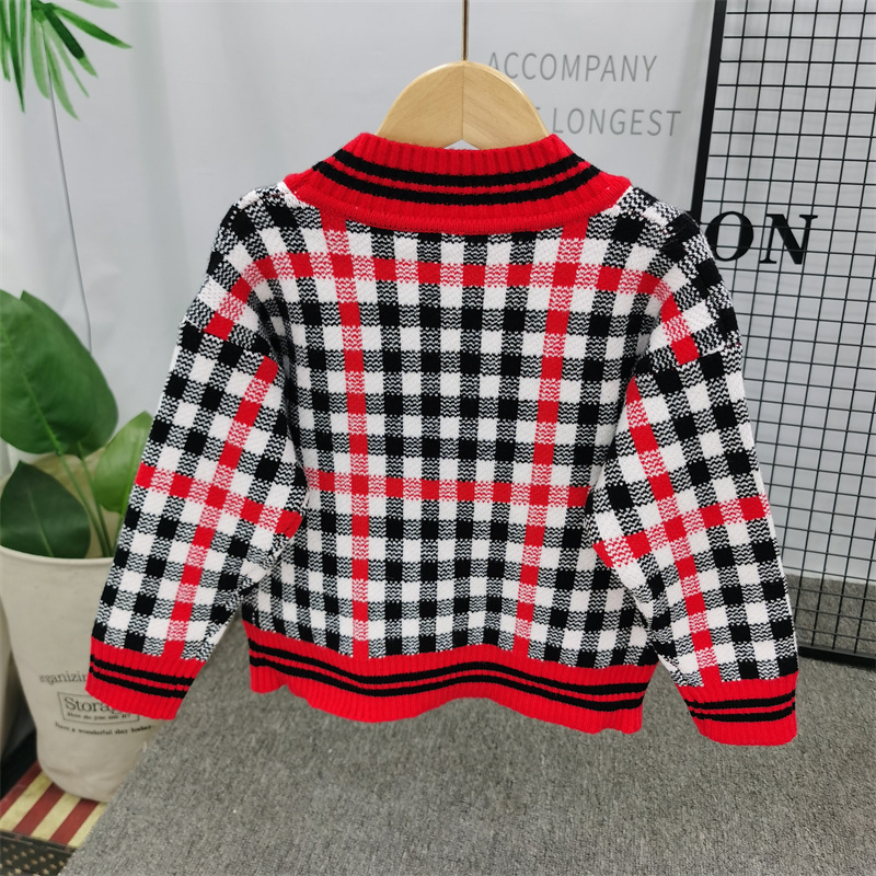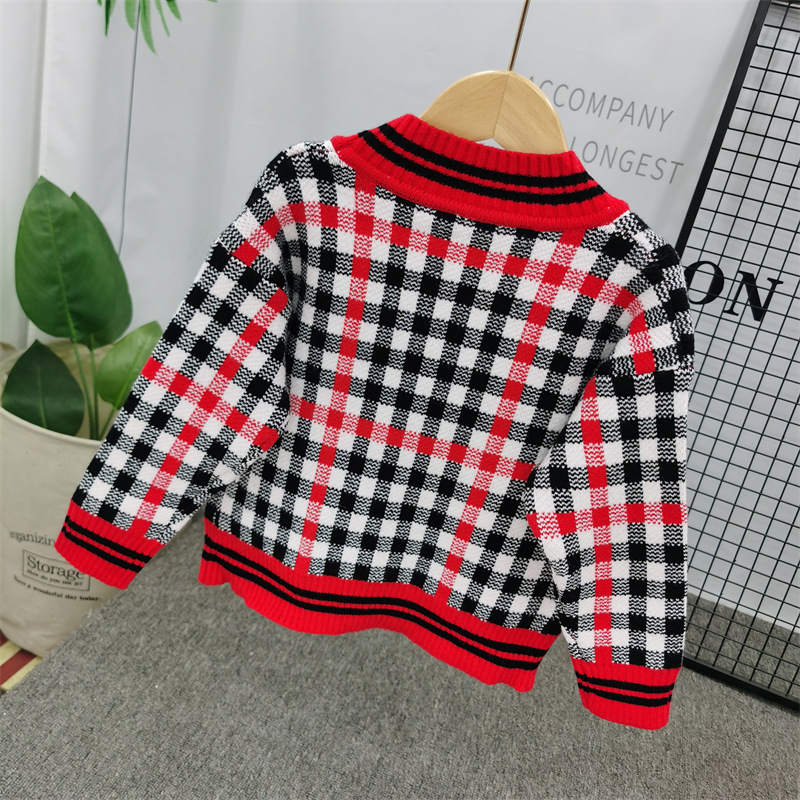 어린이 니트 재킷 가을, 겨울 새로운 한국 스타일 소년 아기 스타일 두꺼운 v 넥 격자 무늬 스웨터 카디건