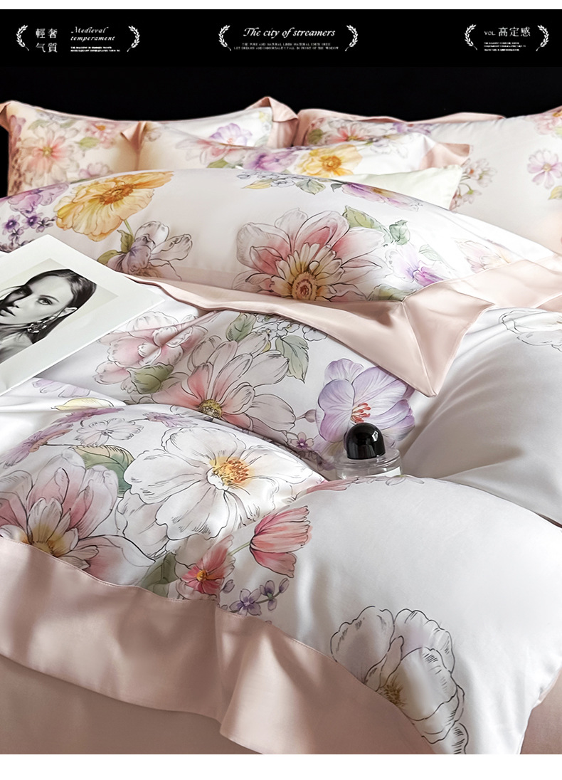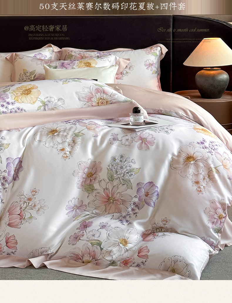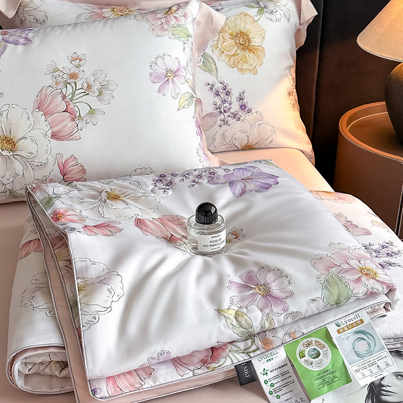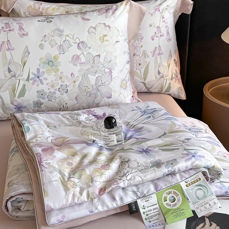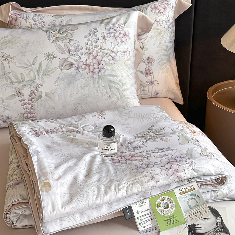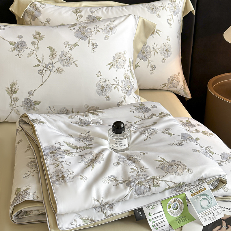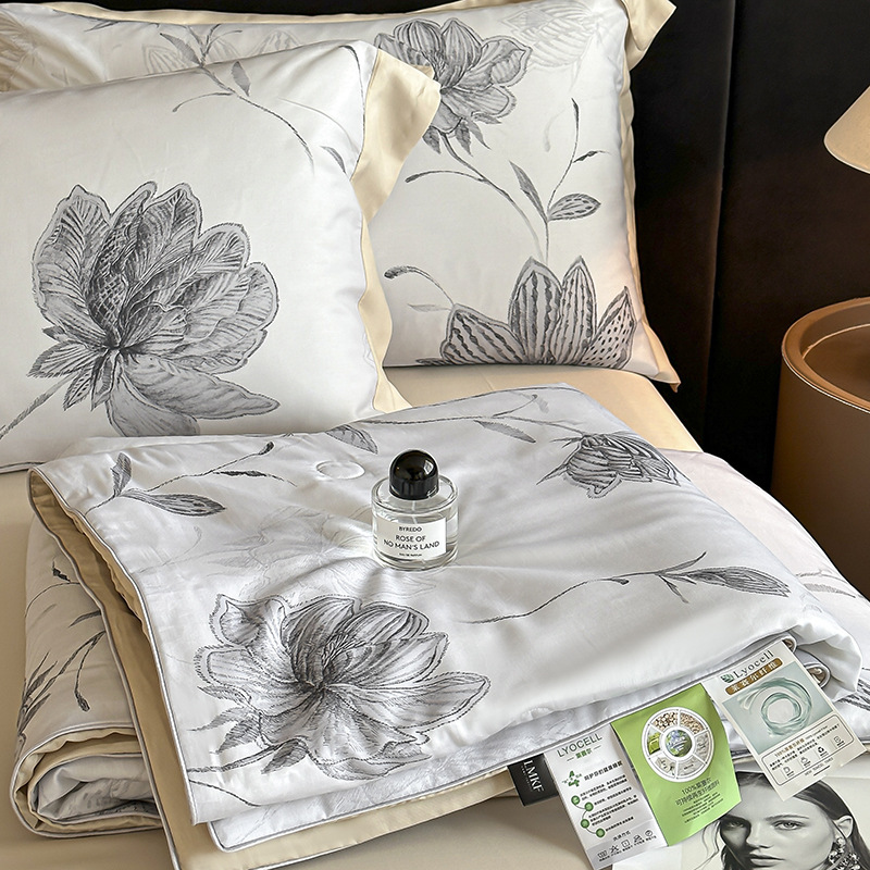새로운 여름 50 텐셀 여름 이불 4 피스 세트 시원한 얼음 실크 에어컨 이불 시원한 침대 시트 이불 침구스토어 가기